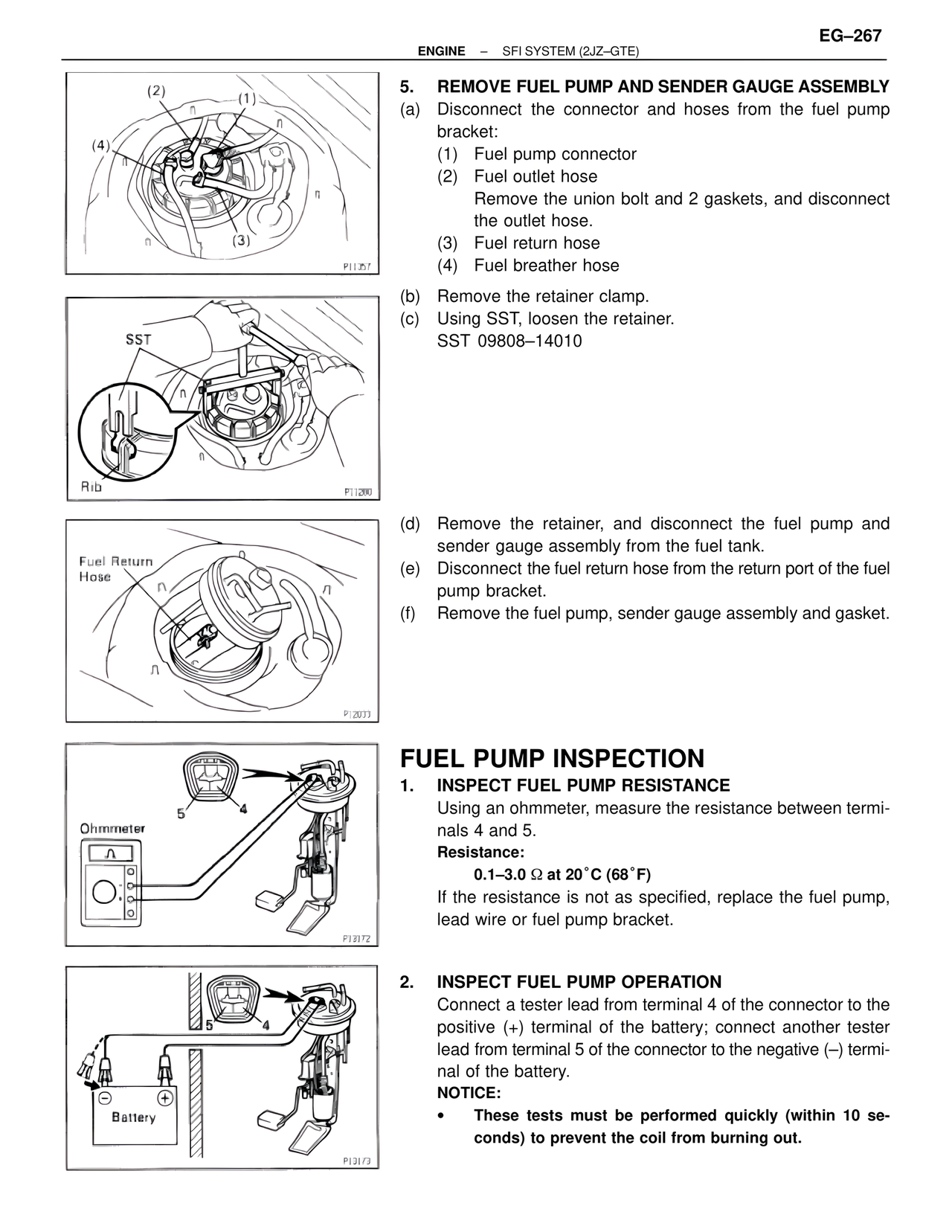 If the resistance is not as specified, replace the fuel pump, lead wire or fuel pump bracket.