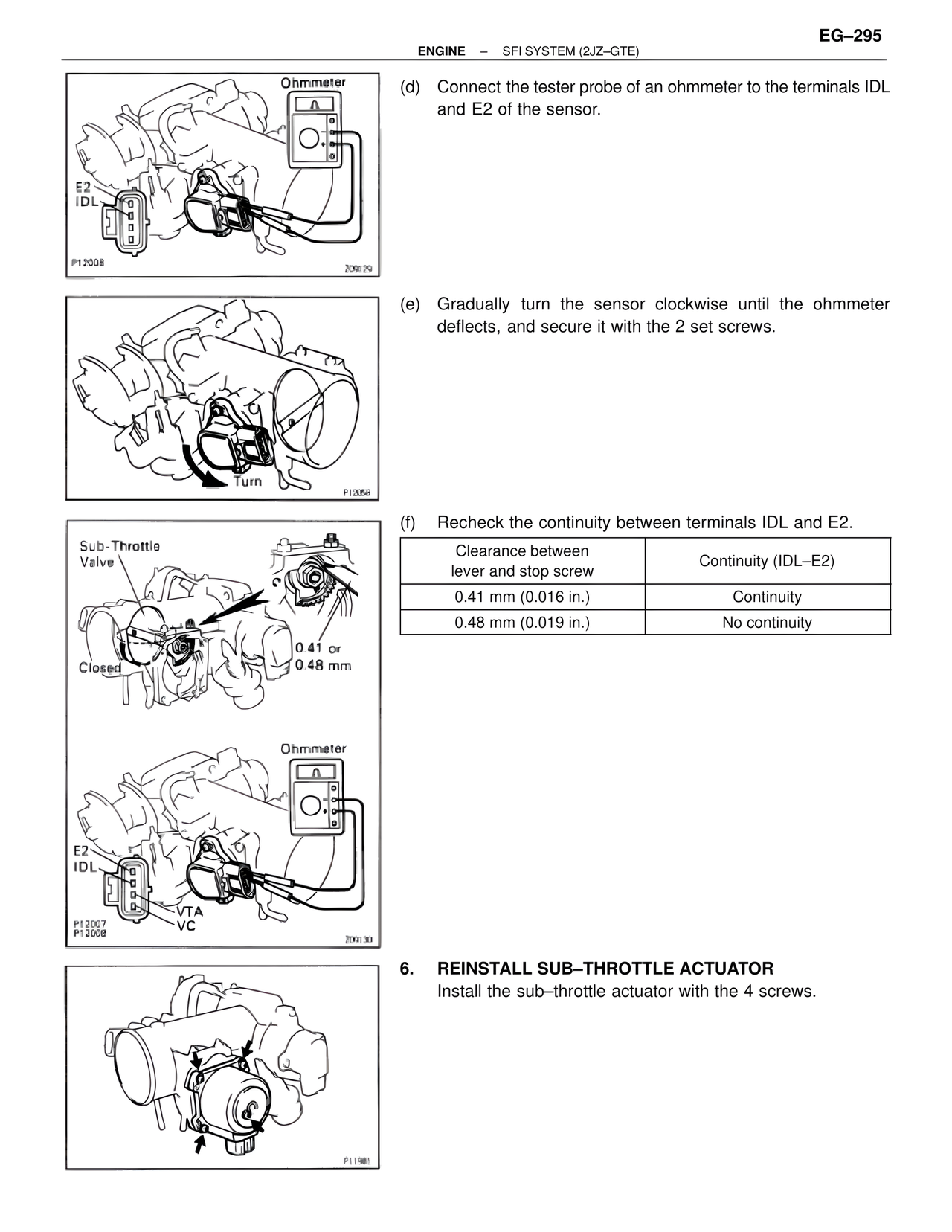6. REINSTALL SUB–THROTTLE ACTUATOR