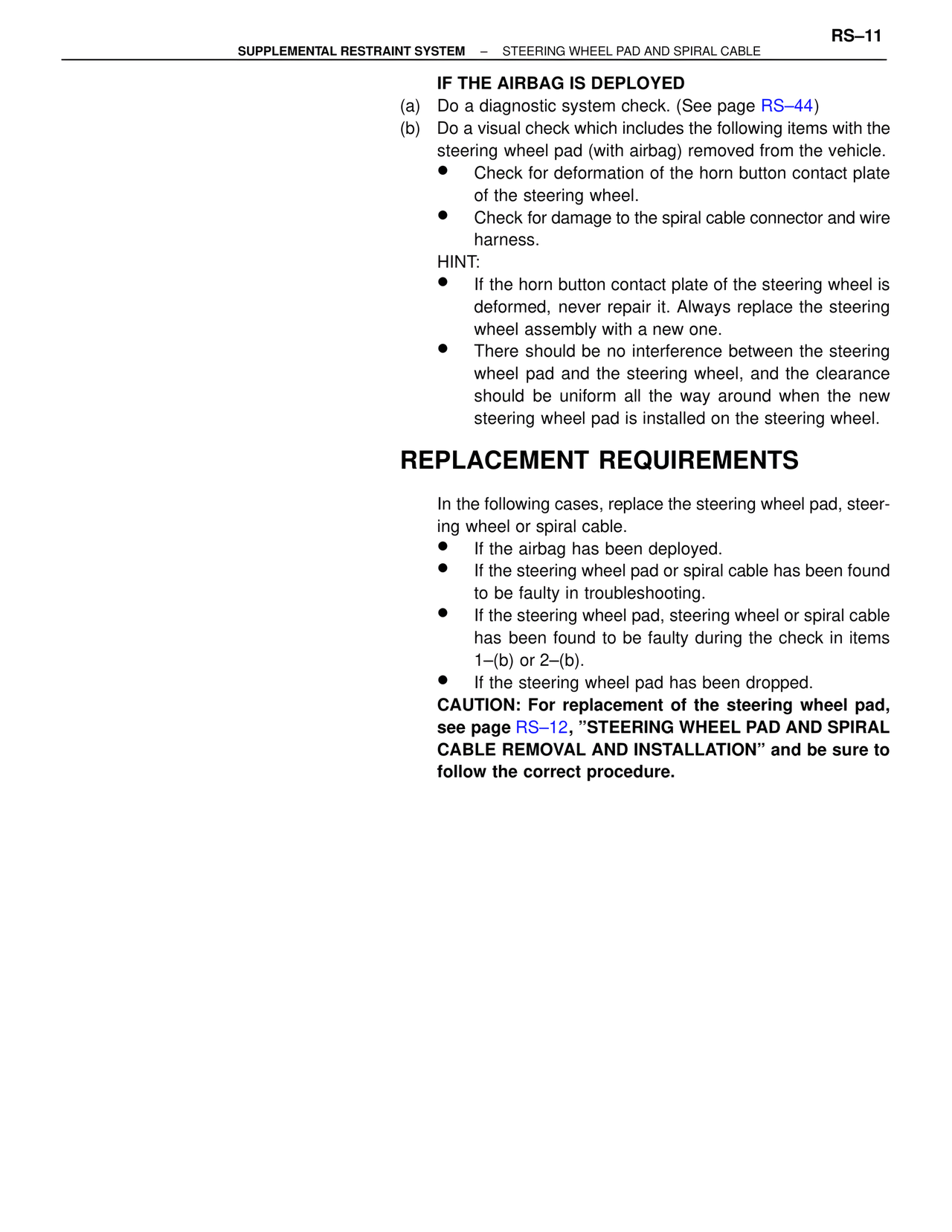 see page RS–12, "STEERING WHEEL PAD AND SPIRAL
