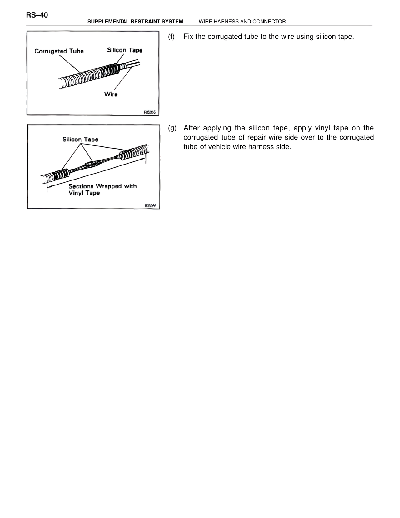 (g) After applying the silicon tape, apply vinyl tape on the corrugated tube of repair wire side over to the corrugated tube of vehicle wire harness side.