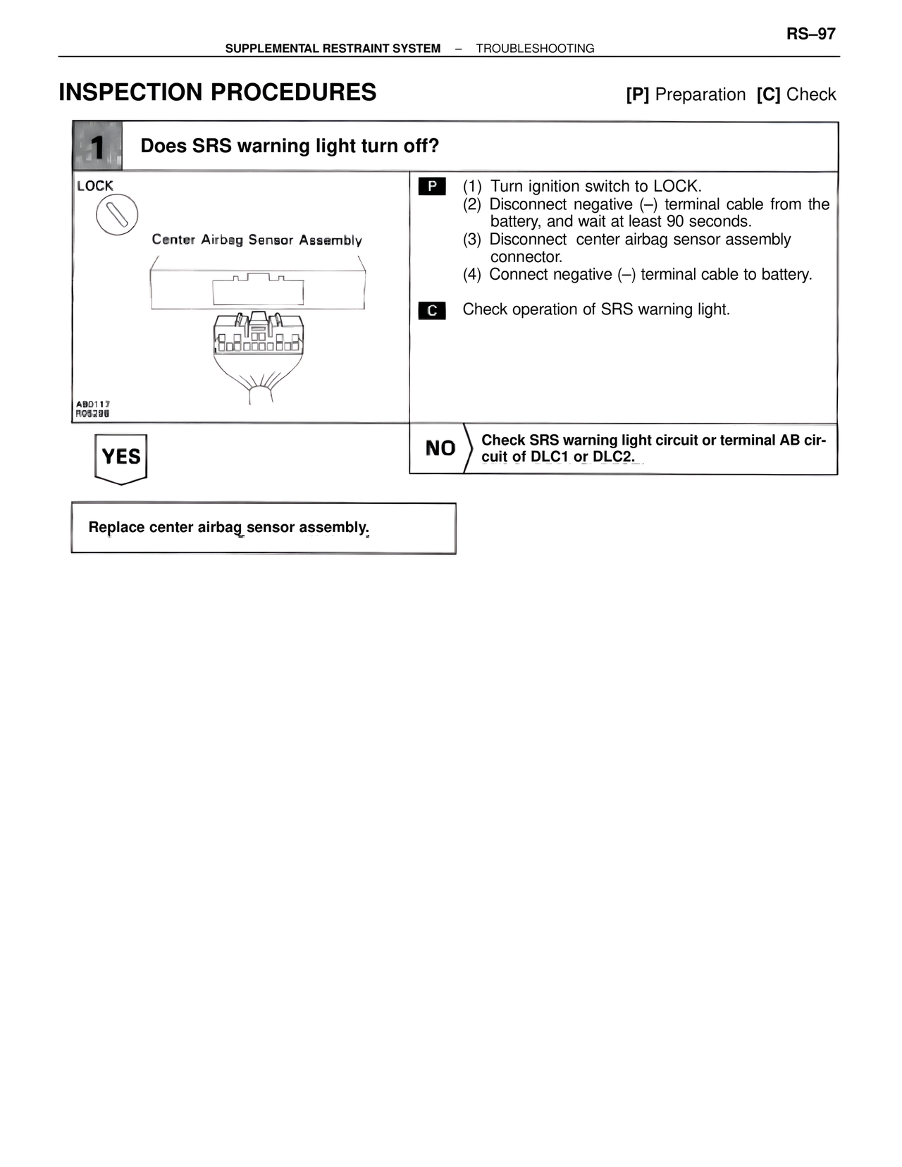 NO Check SRS warning light circuit or terminal AB circuit of DLC1 or DLC2.