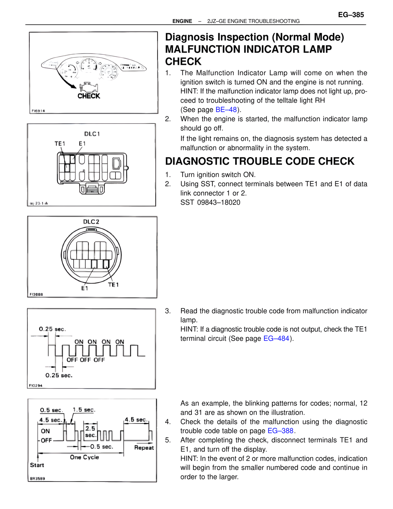 HINT: If a diagnostic trouble code is not output, check the TE1 terminal circuit (See page EG-484).