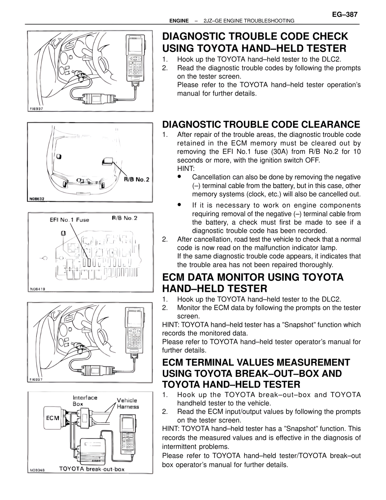 ECM DATA MONITOR USING TOYOTA HAND–HELD TESTER