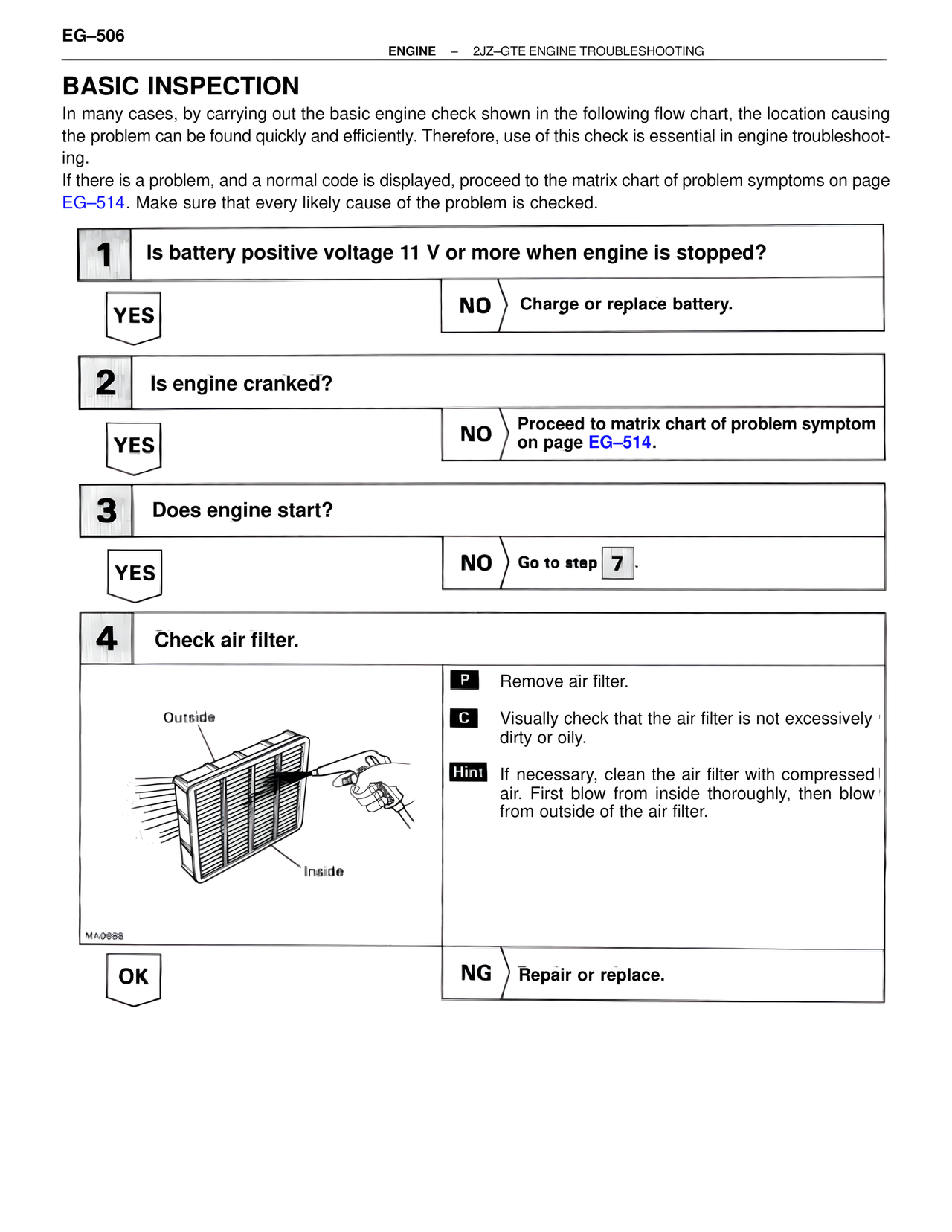NO Proceed to matrix chart of problem symptom on page EG–514.