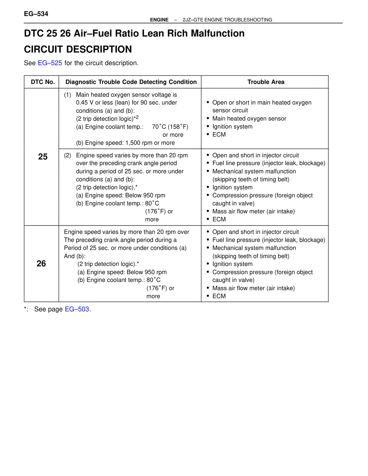 DTC 25 26 Air–Fuel Ratio Lean Rich Malfunction