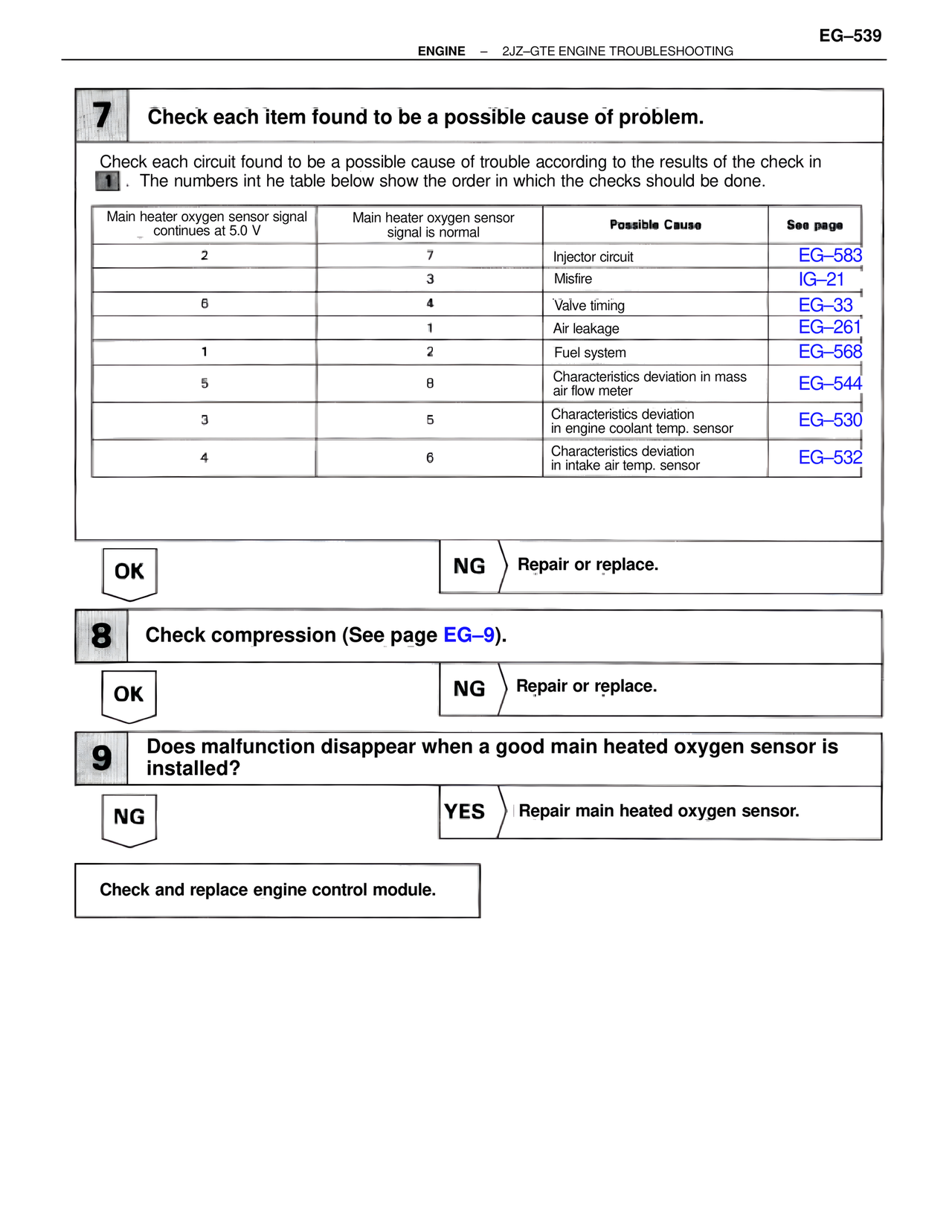 9 Does malfunction disappear when a good main heated oxygen sensor is