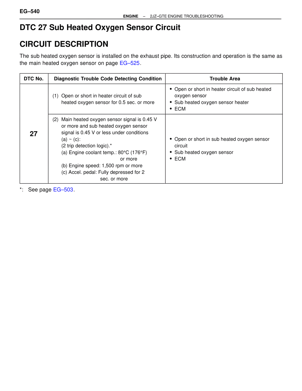 DTC 27 Sub Heated Oxygen Sensor Circuit