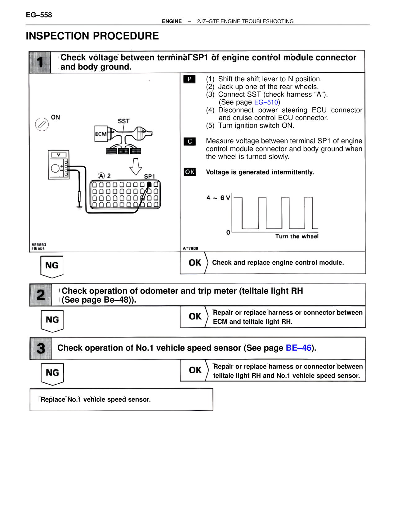 3 Check operation of No.1 vehicle speed sensor (See page BE–46).