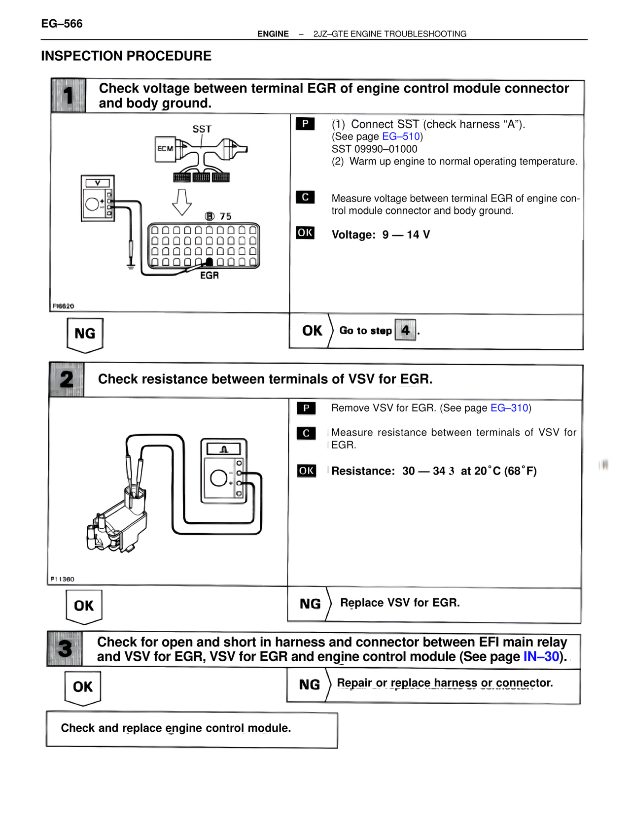 3 Check for open and short in harness and connector between EFI main relay and VSV for EGR, VSV for EGR and engine control module (See page IN–30).