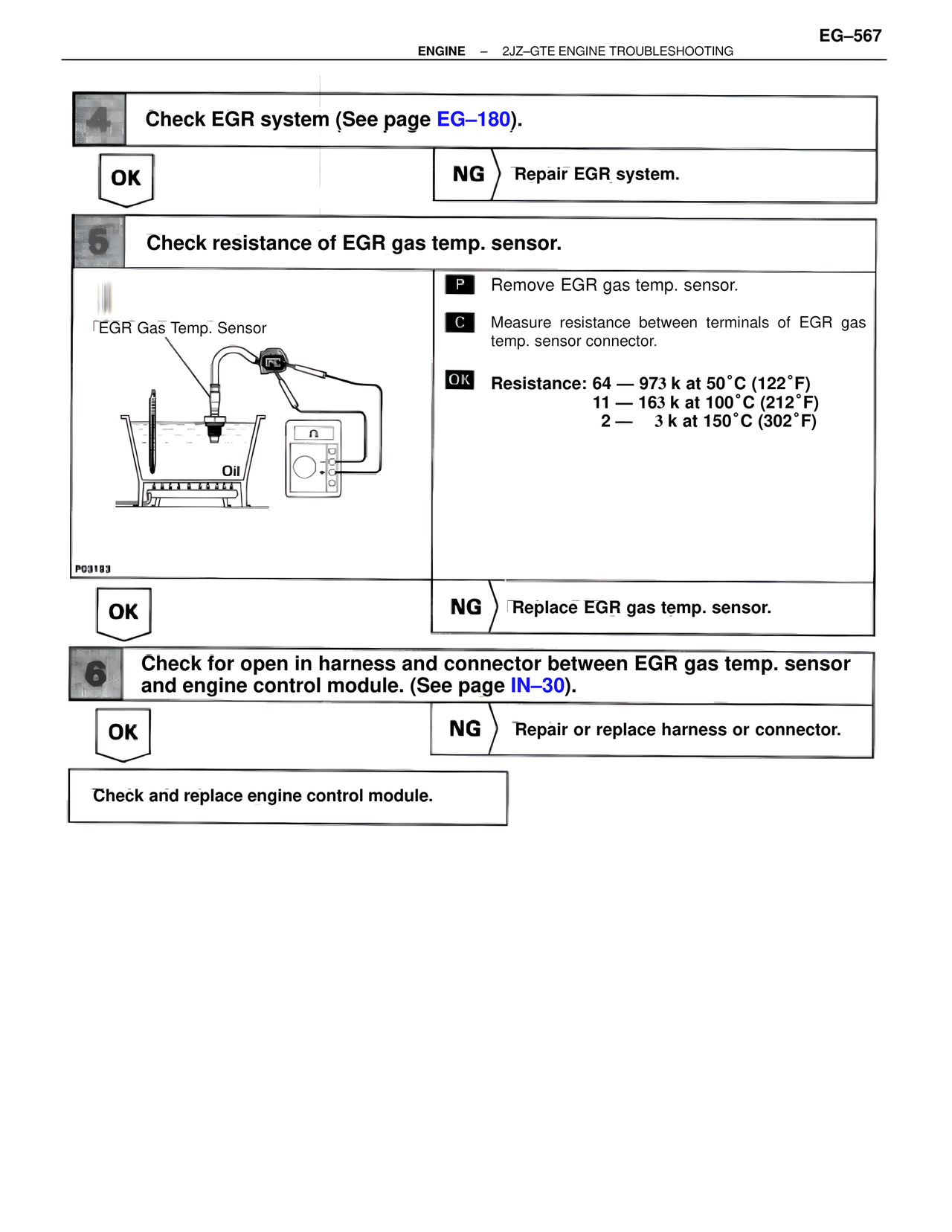 6 Check for open in harness and connector between EGR gas temp. sensor
