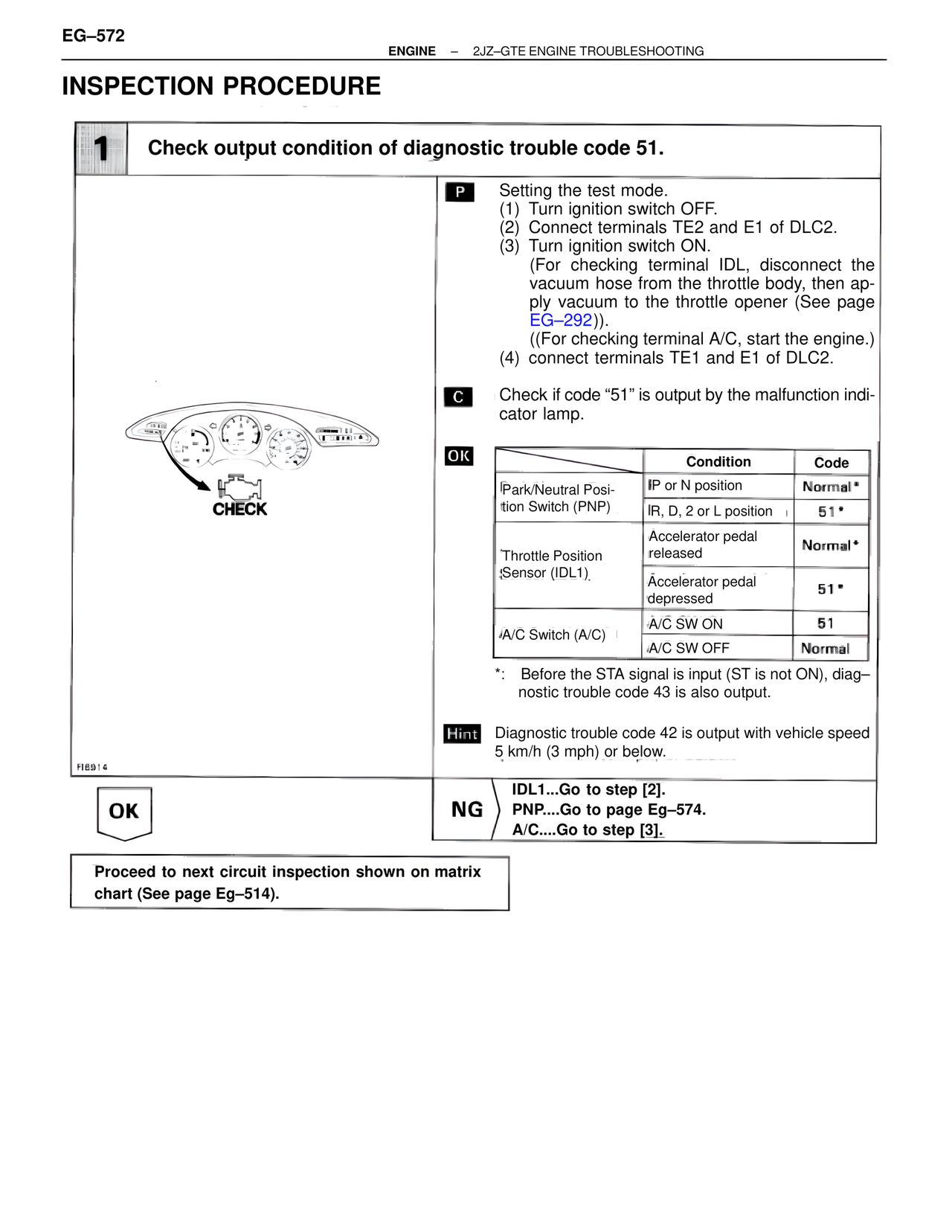 Proceed to next circuit inspection shown on matrix chart (See page Eg–514).