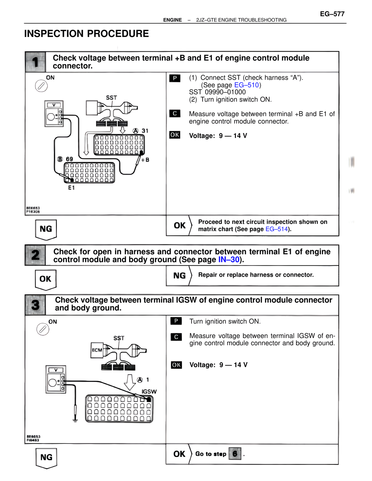 OK Proceed to next circuit inspection shown on matrix chart (See page EG–514).
