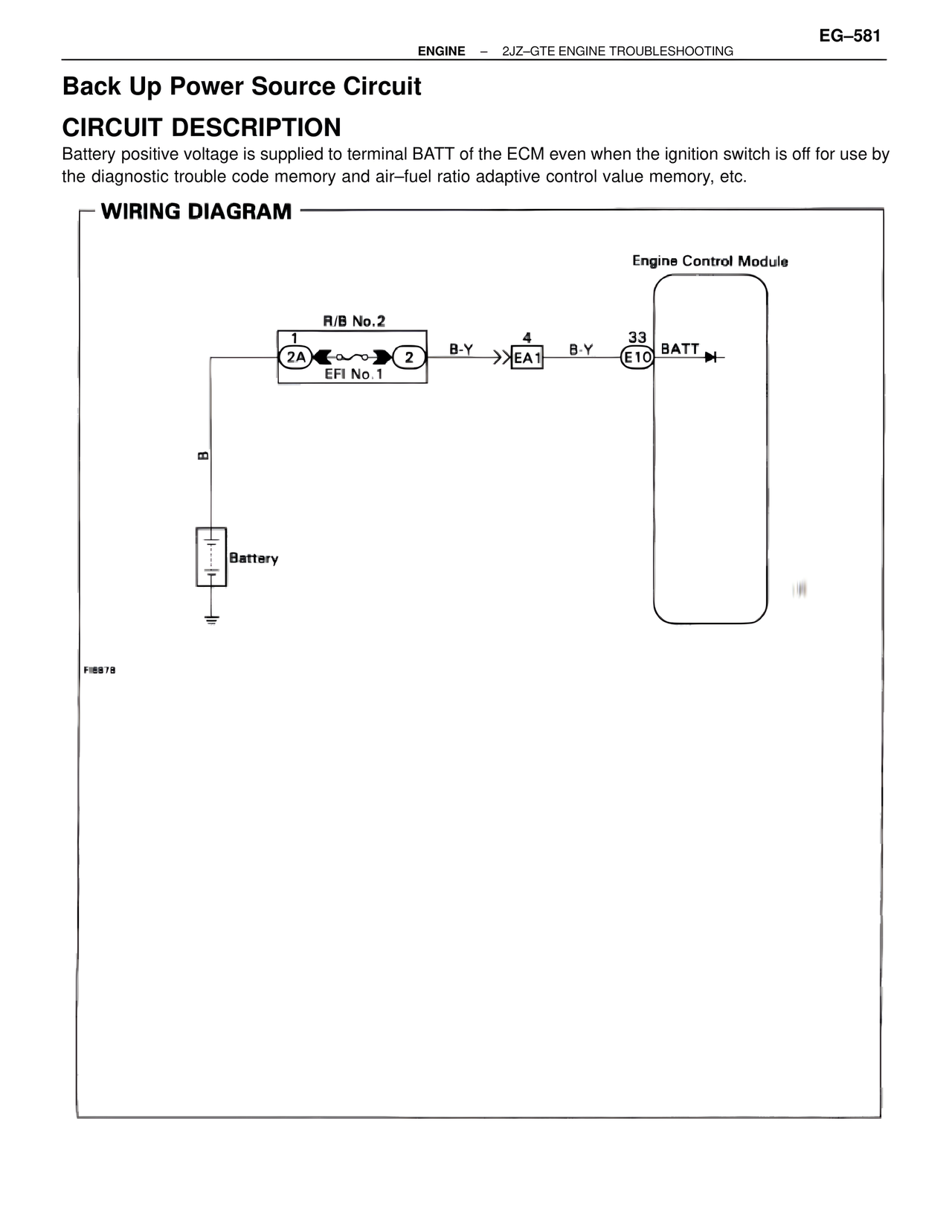 Battery positive voltage is supplied to terminal BATT of the ECM even when the ignition switch is off for use by the diagnostic trouble code memory and air–fuel ratio adaptive control value memory, etc.