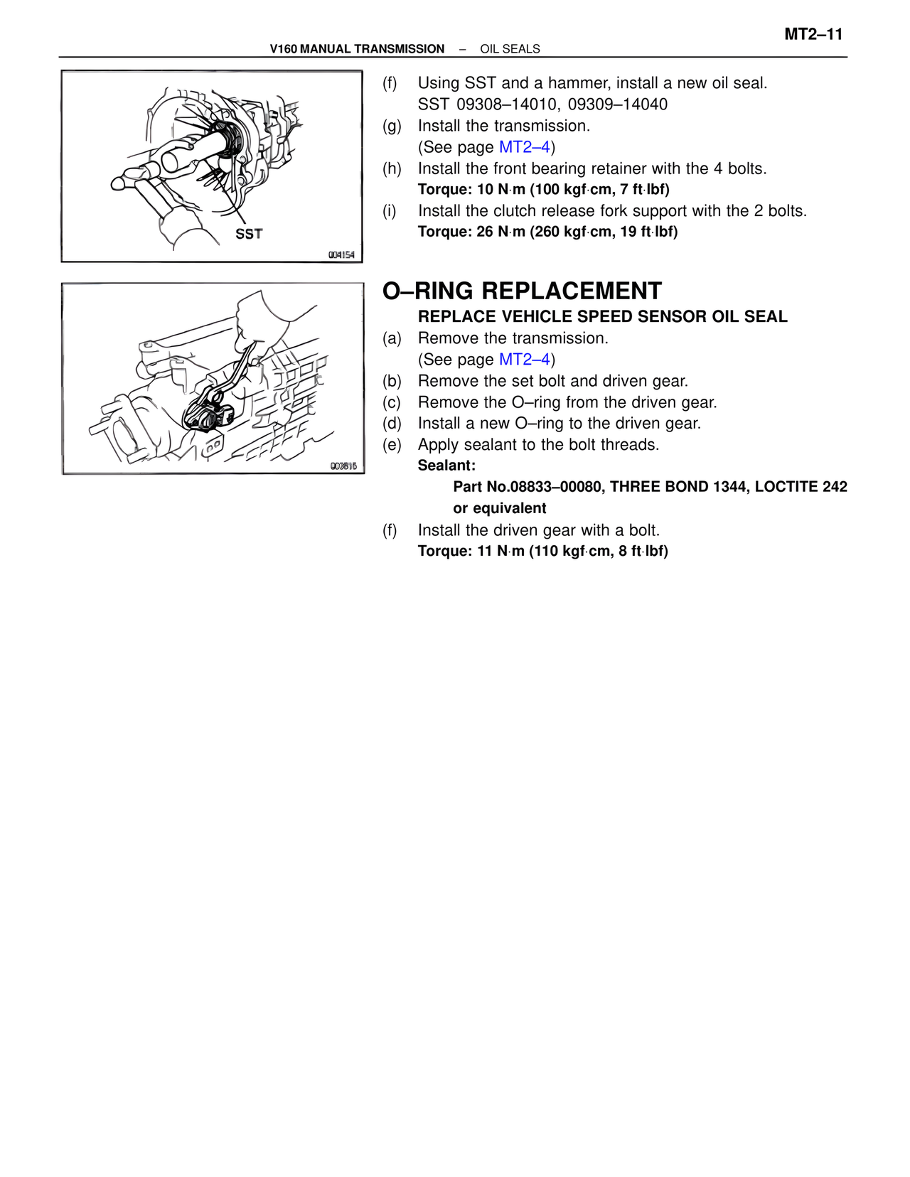 V160 MANUAL TRANSMISSION – OIL SEALS