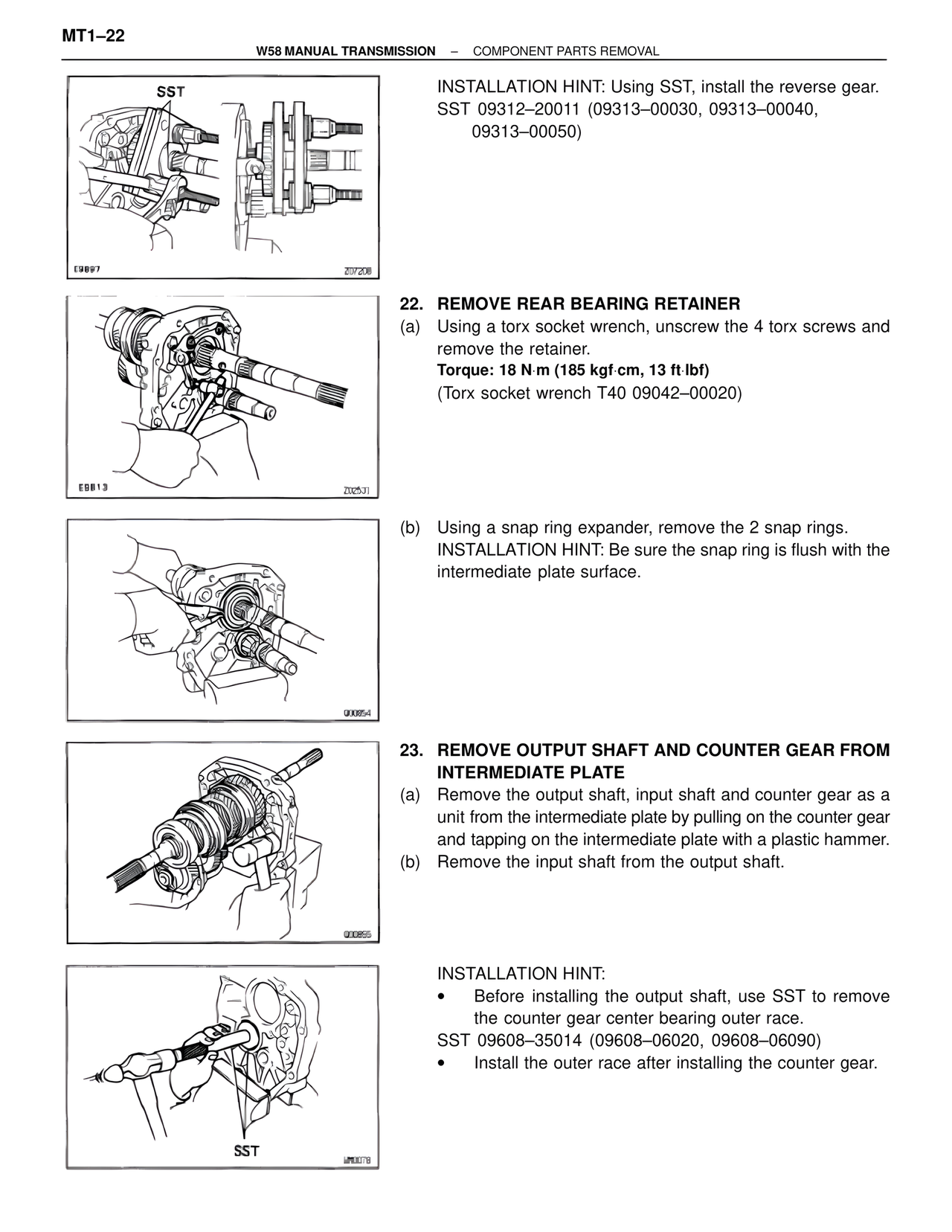 W58 MANUAL TRANSMISSION – COMPONENT PARTS REMOVAL