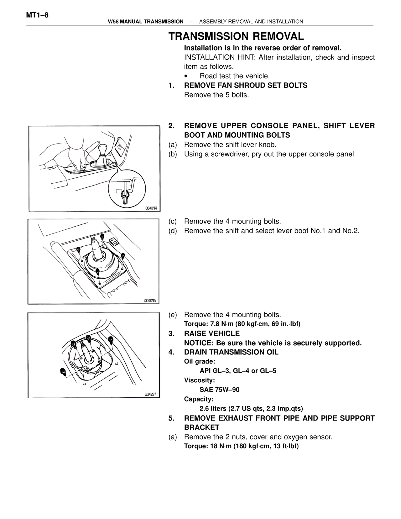 W58 MANUAL TRANSMISSION – ASSEMBLY REMOVAL AND INSTALLATION