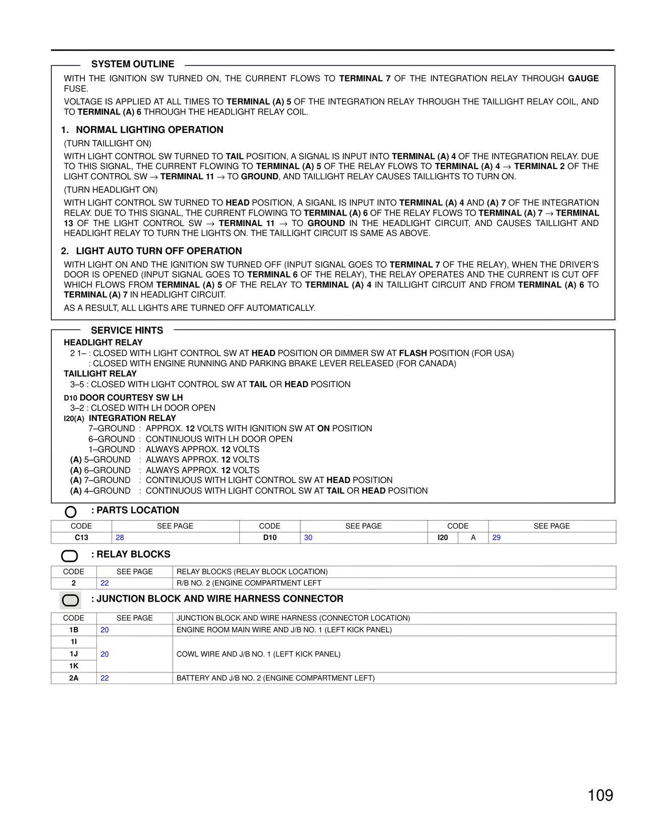 CODE SEE PAGE RELAY BLOCKS (RELAY BLOCK LOCATION)