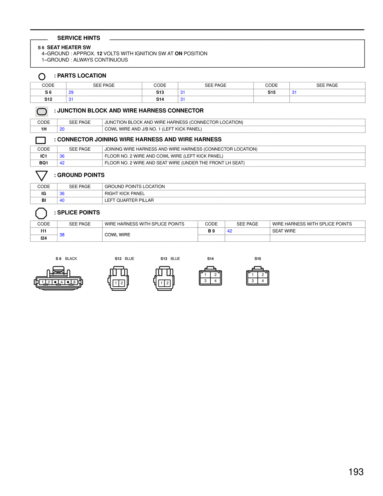 CODE SEE PAGE JOINING WIRE HARNESS AND WIRE HARNESS (CONNECTOR LOCATION)