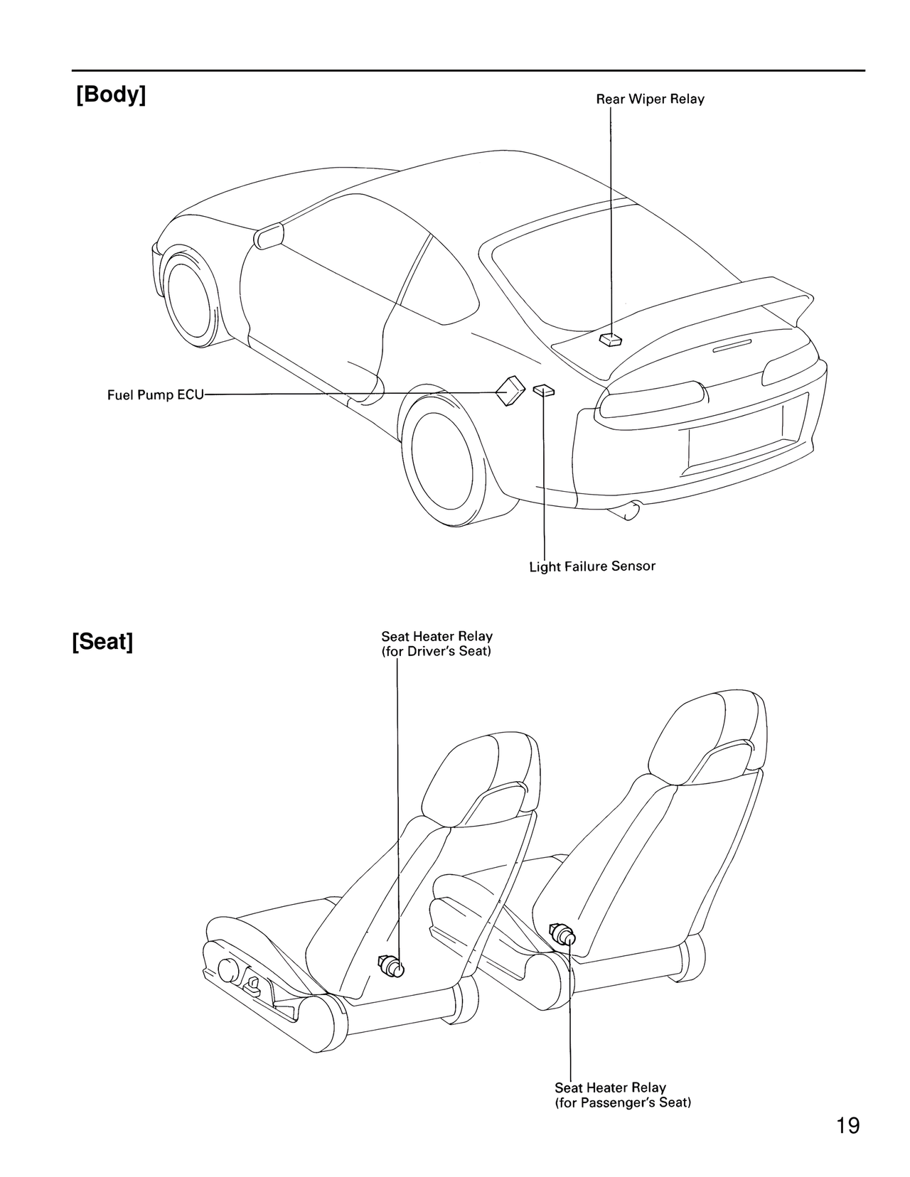 [Body] Rear Wiper Relay Fuel Pump ECU Light Failure Sensor [Seat] Seat Heater Relay (for Driver's Seat) Seat Heater Relay (for Passenger's Seat) 19