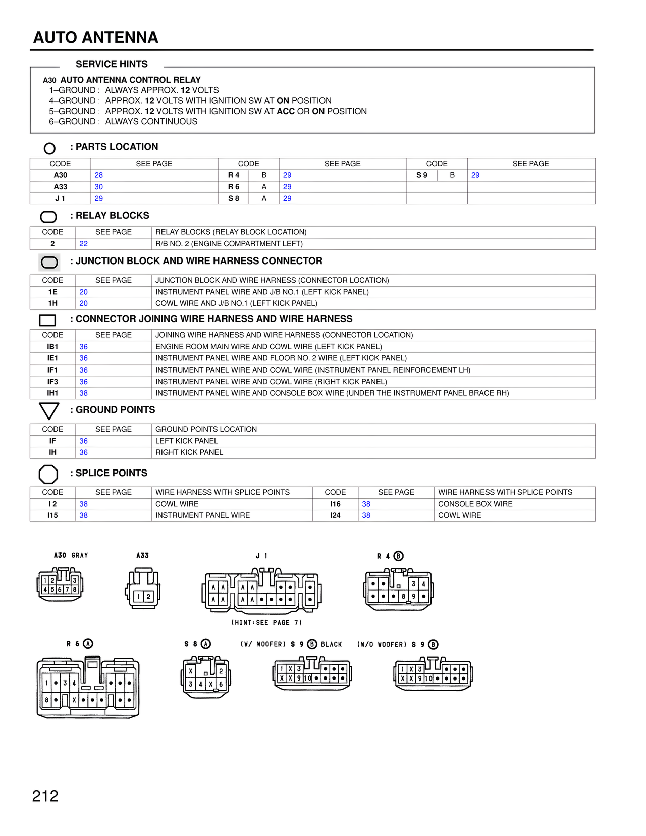 CODE SEE PAGE JUNCTION BLOCK AND WIRE HARNESS (CONNECTOR LOCATION)