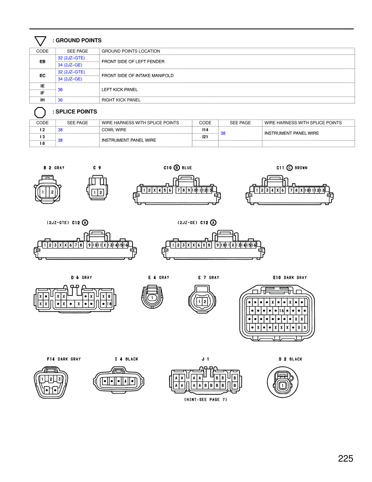 CODE | SEE PAGE | WIRE HARNESS WITH SPLICE POINTS | CODE | SEE PAGE | WIRE HARNESS WITH SPLICE POINTS