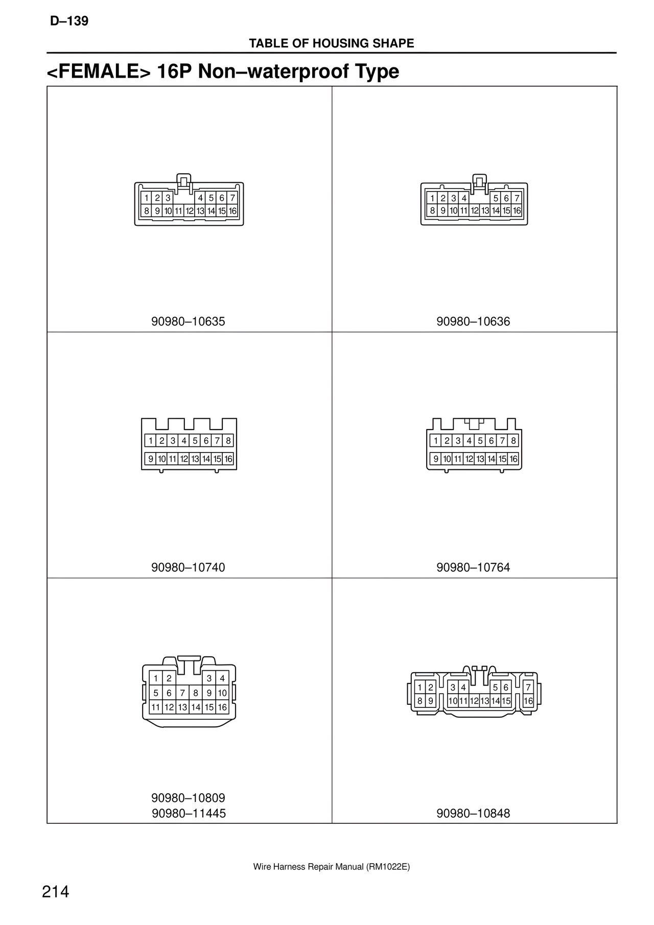 <FEMALE> 16P Non–waterproof Type