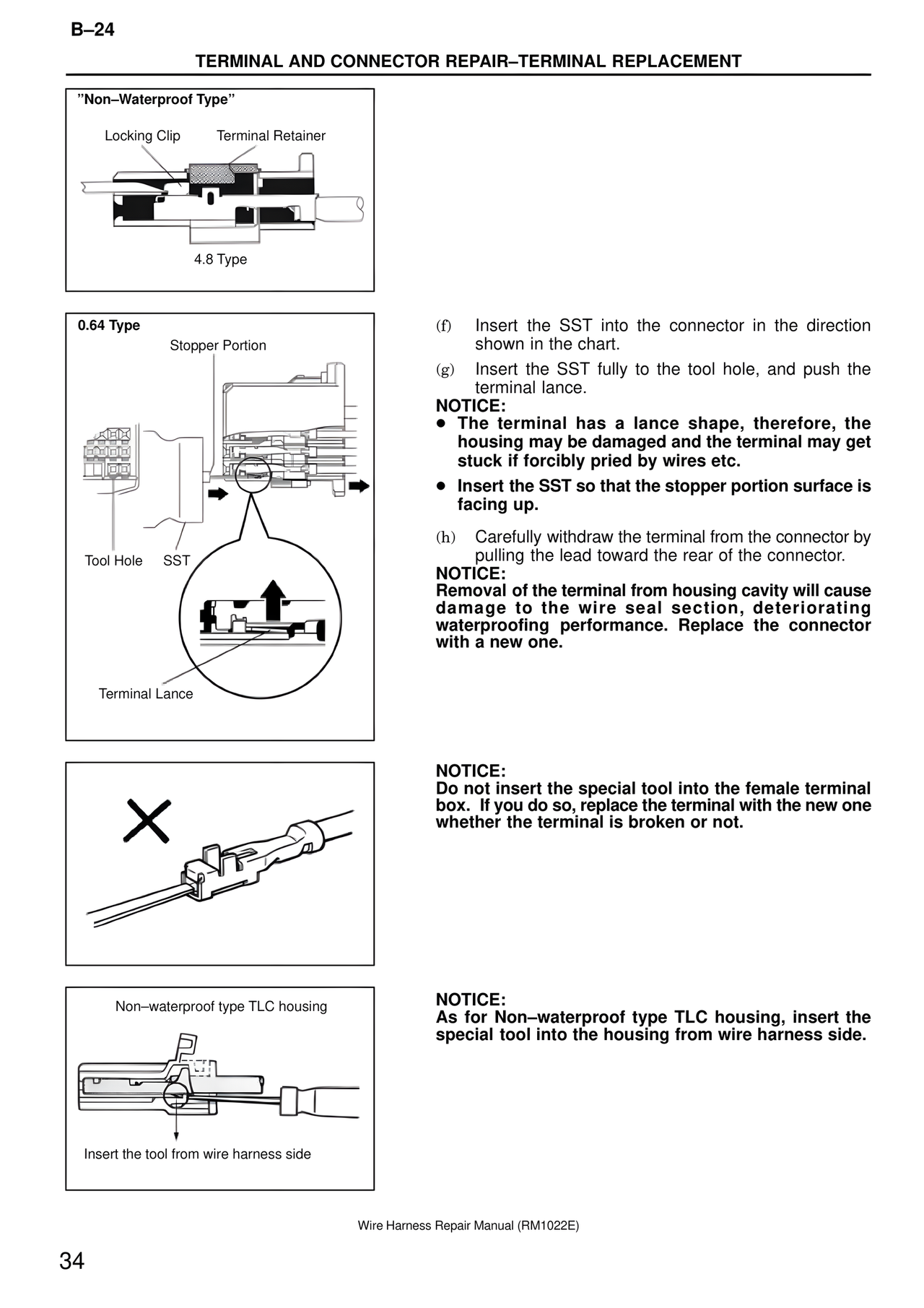 As for Non–waterproof type TLC housing, insert the special tool into the housing from wire harness side.