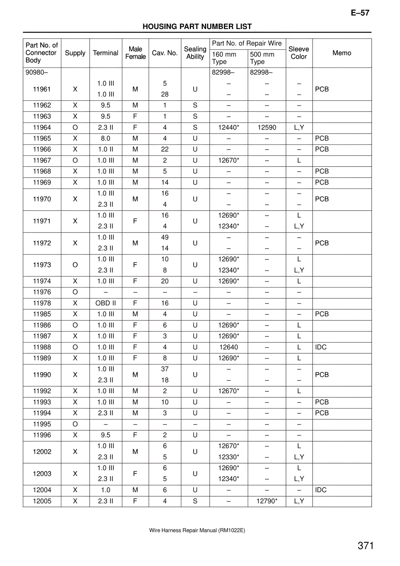11961 | X | 1.0 III | M | 5 | U | 82998– – | 82998– – | – | PCB