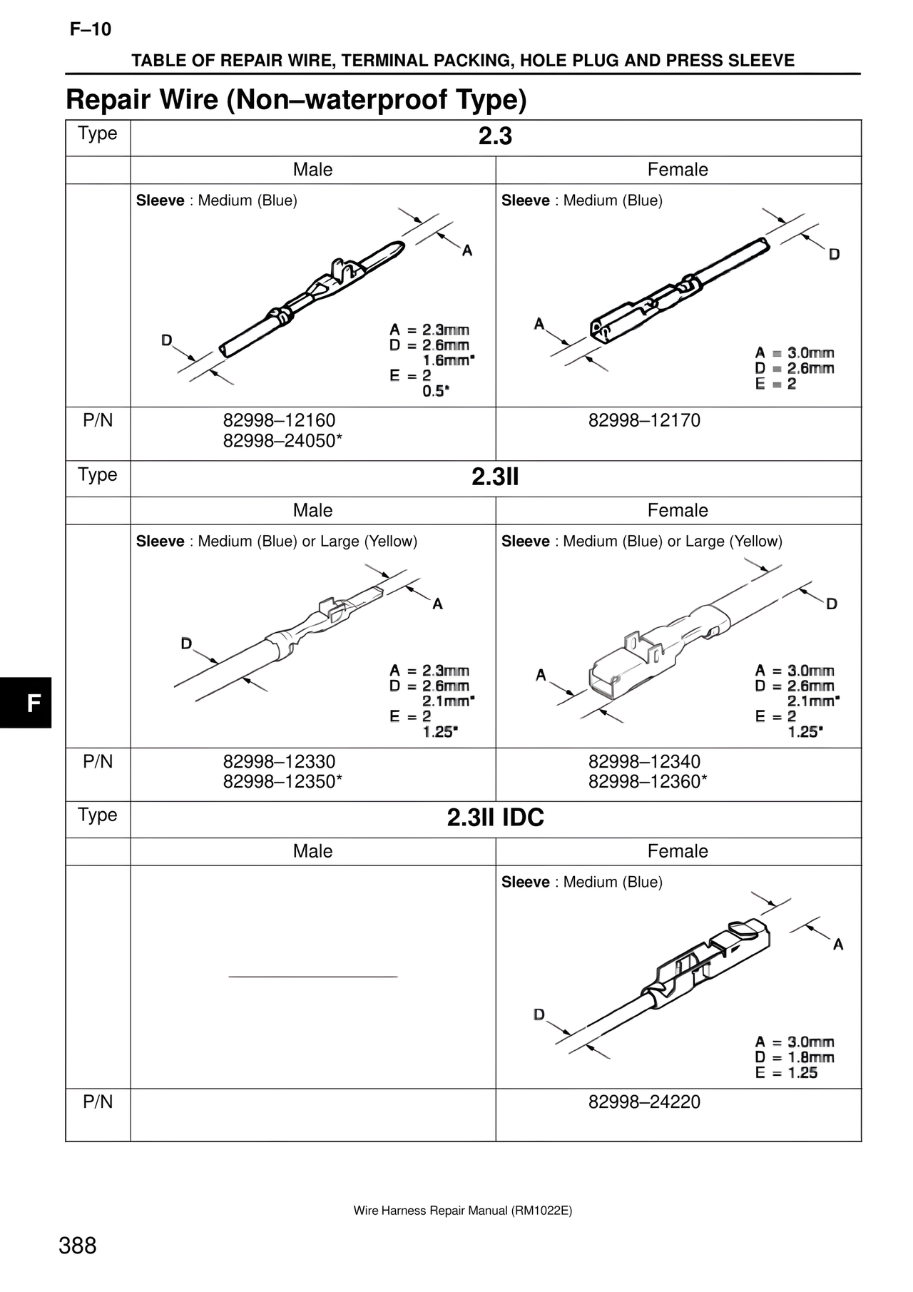 TABLE OF REPAIR WIRE, TERMINAL PACKING, HOLE PLUG AND PRESS SLEEVE