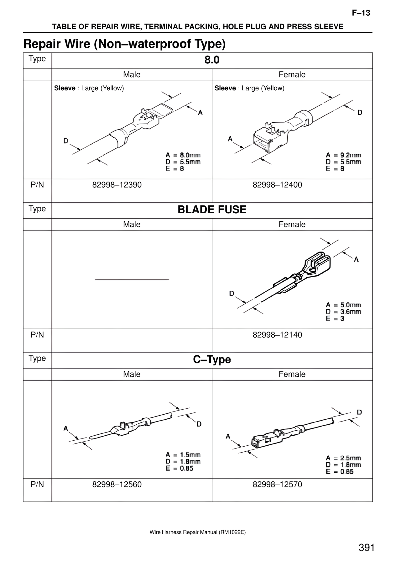 TABLE OF REPAIR WIRE, TERMINAL PACKING, HOLE PLUG AND PRESS SLEEVE