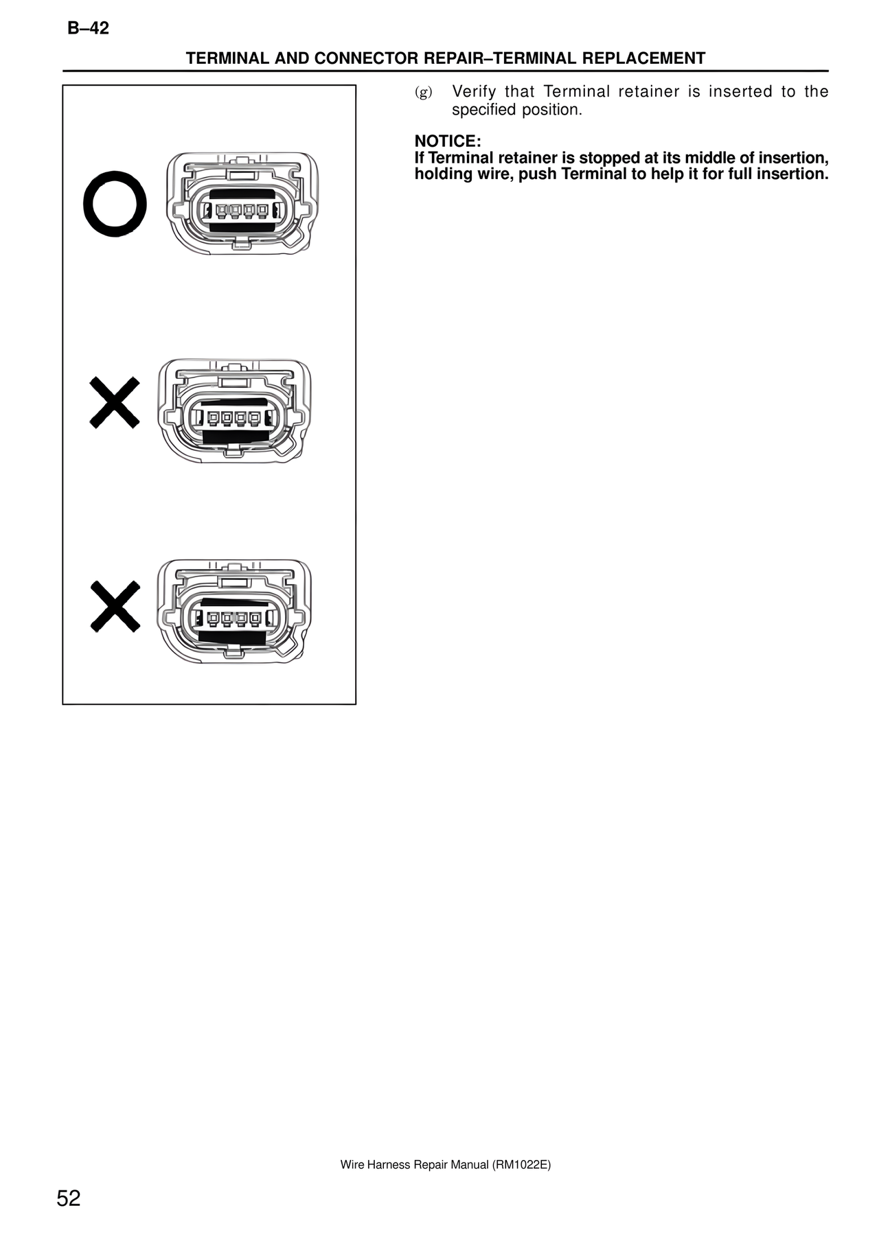 (g) Verify that Terminal retainer is inserted to the