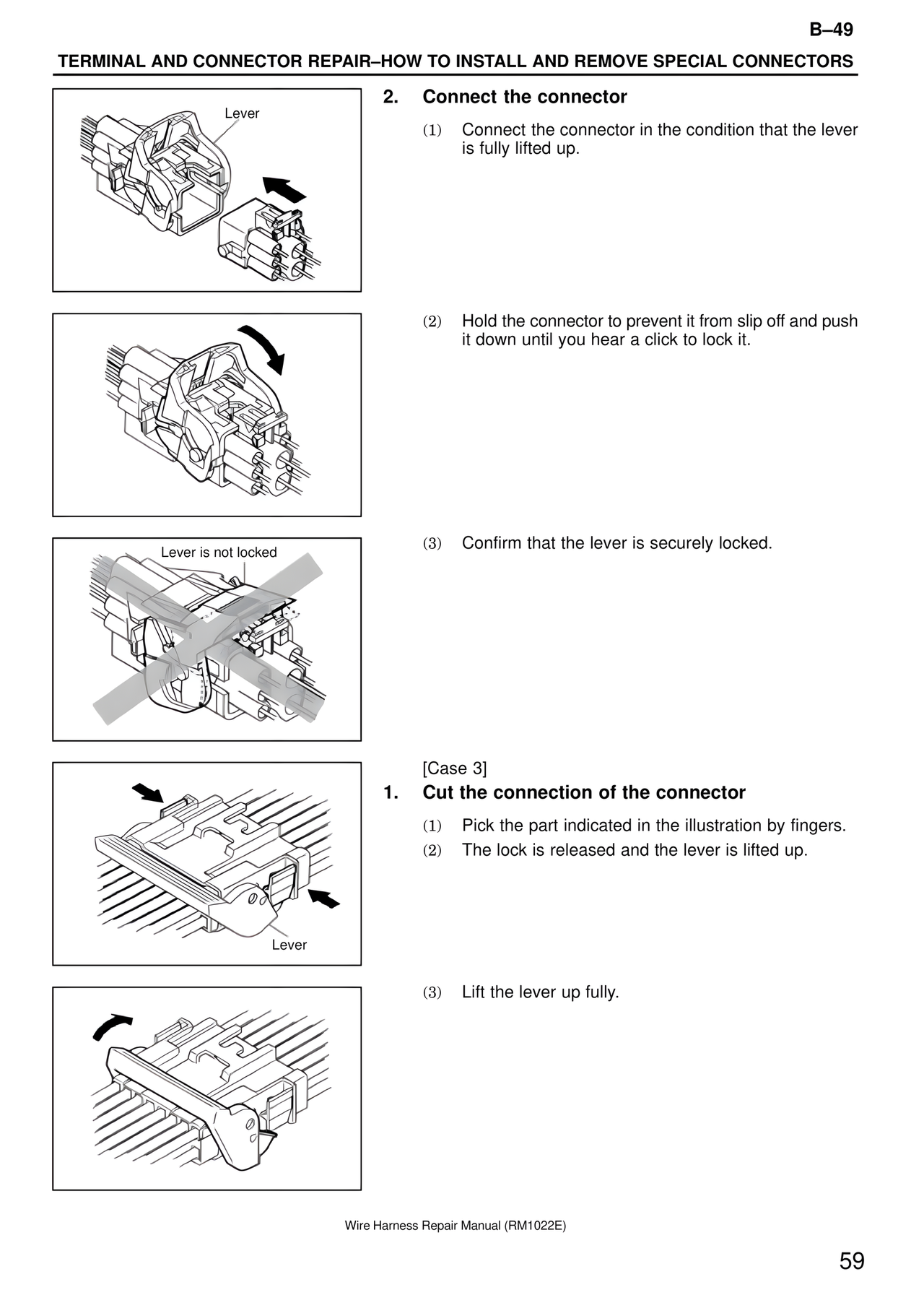 (1) Connect the connector in the condition that the lever is fully lifted up.