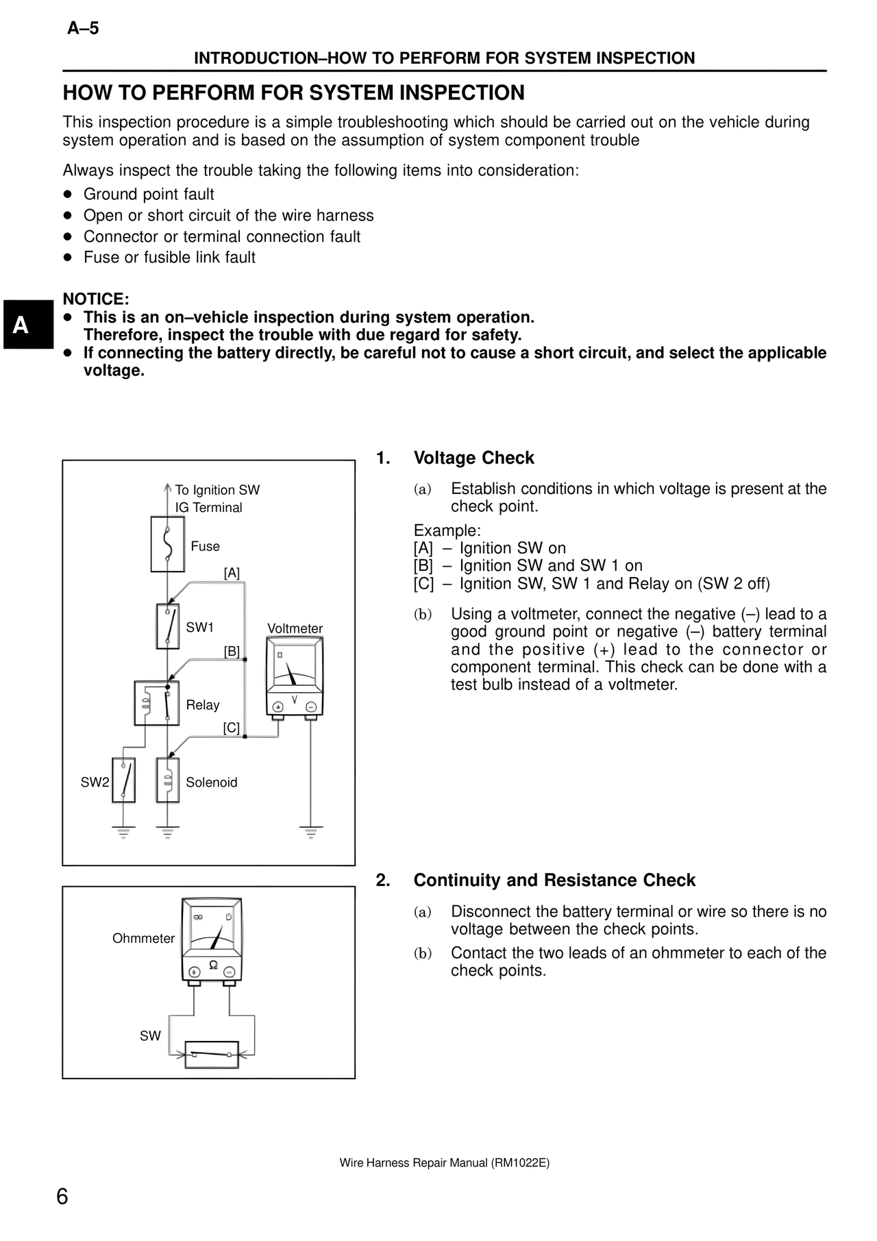 (a) Disconnect the battery terminal or wire so there is no voltage between the check points.