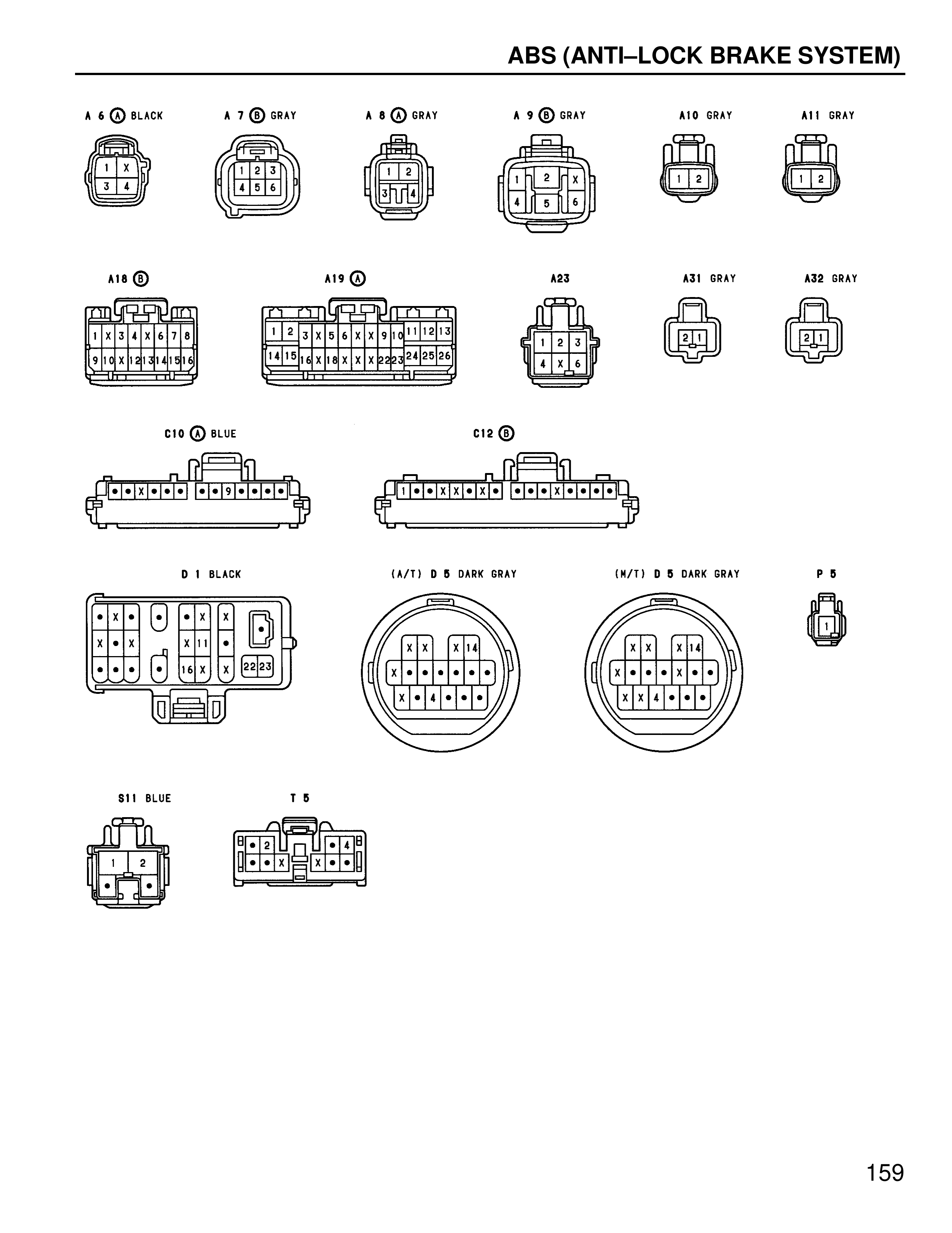 [Connector diagrams showing various pin layouts with X markings]
