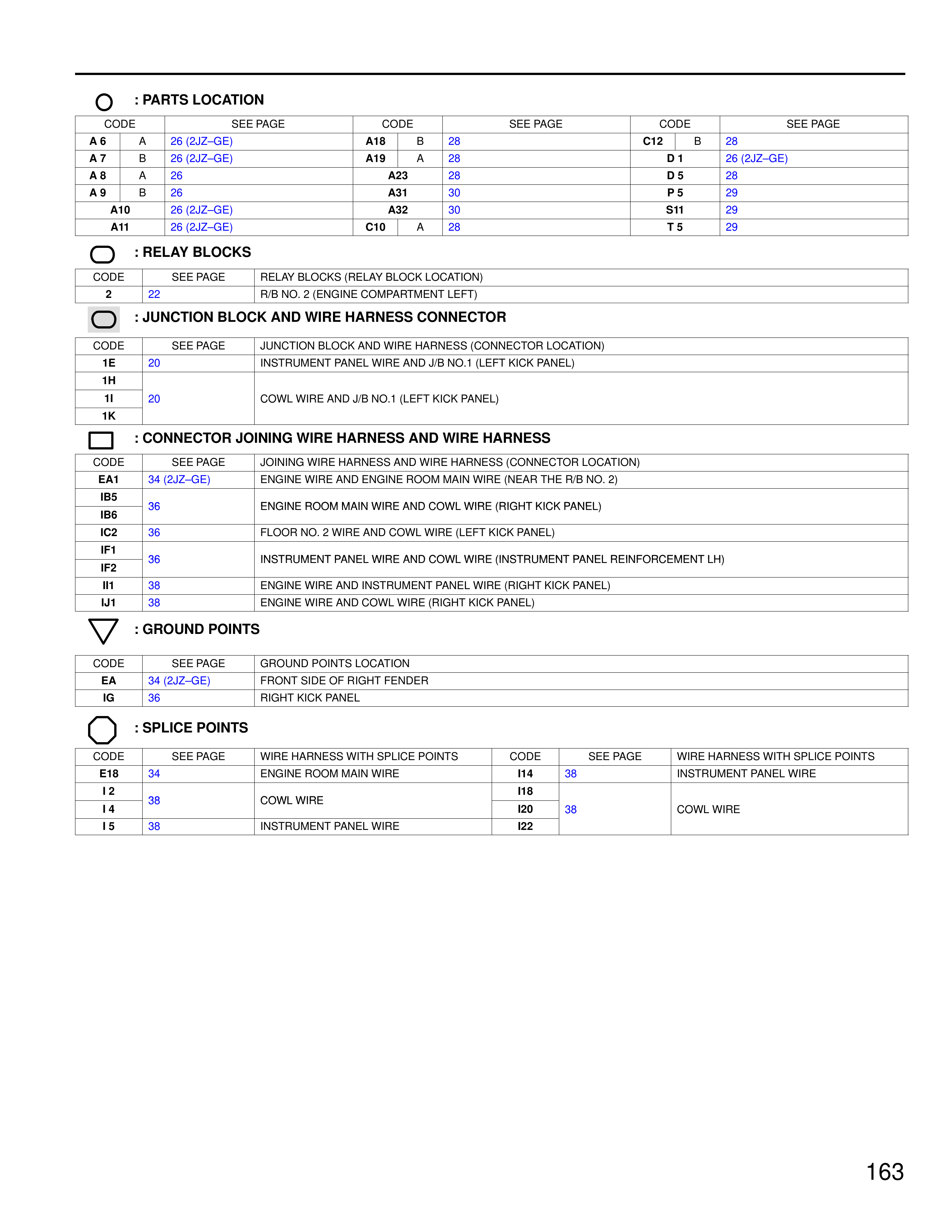 CODE SEE PAGE JUNCTION BLOCK AND WIRE HARNESS (CONNECTOR LOCATION)