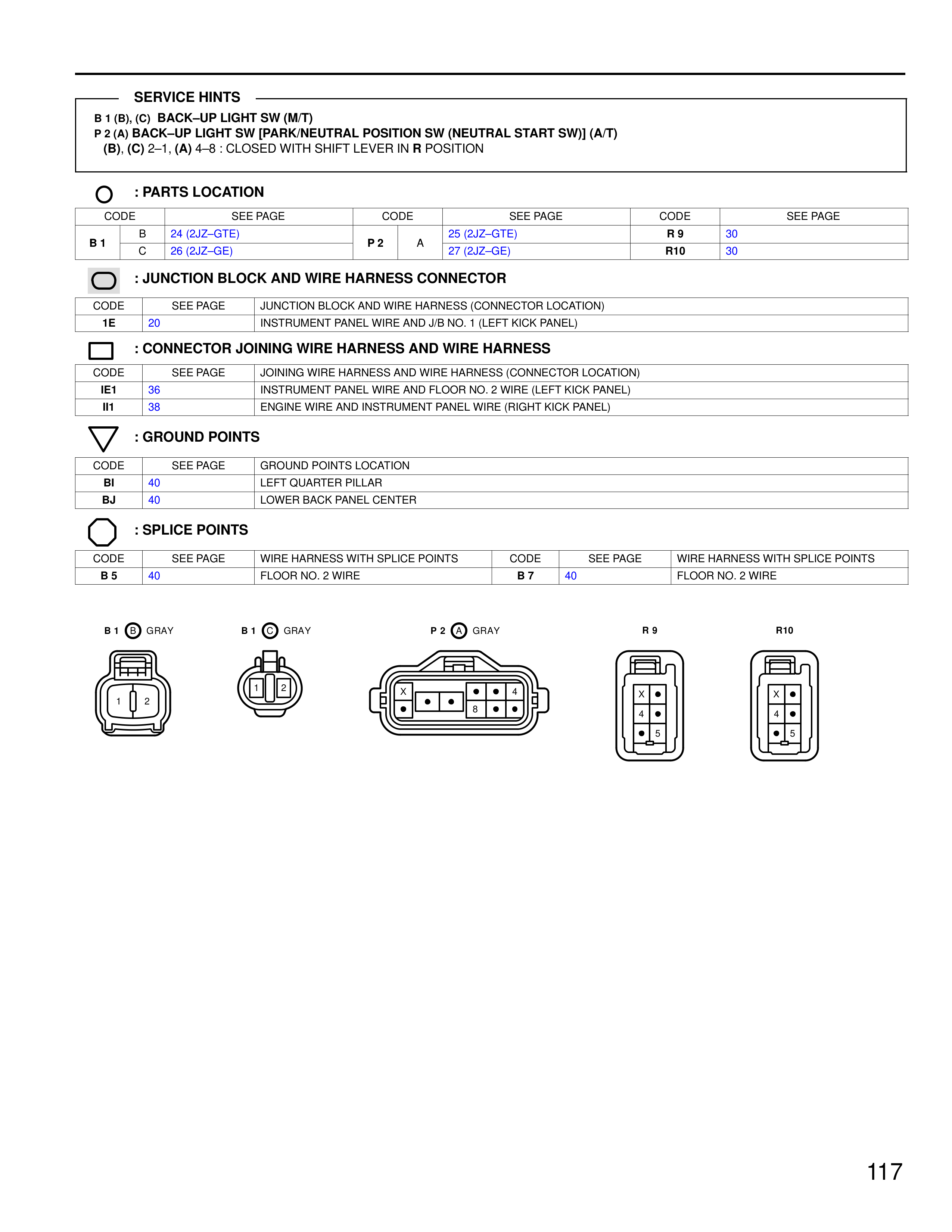 CODE | SEE PAGE | JOINING WIRE HARNESS AND WIRE HARNESS (CONNECTOR LOCATION)