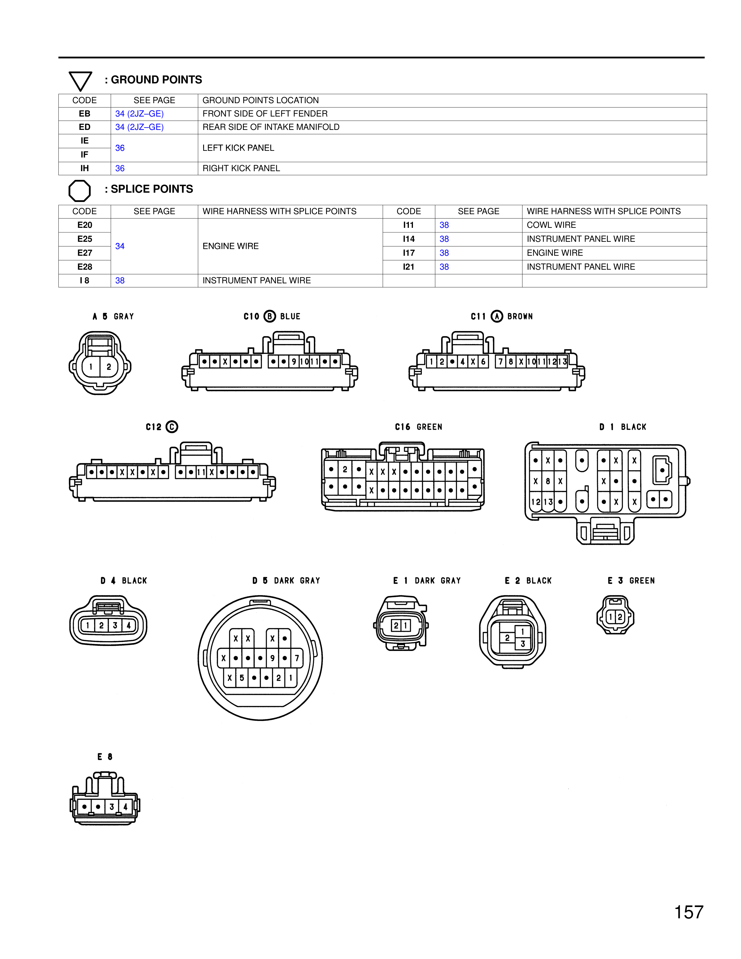 CODE | SEE PAGE | WIRE HARNESS WITH SPLICE POINTS | CODE | SEE PAGE | WIRE HARNESS WITH SPLICE POINTS