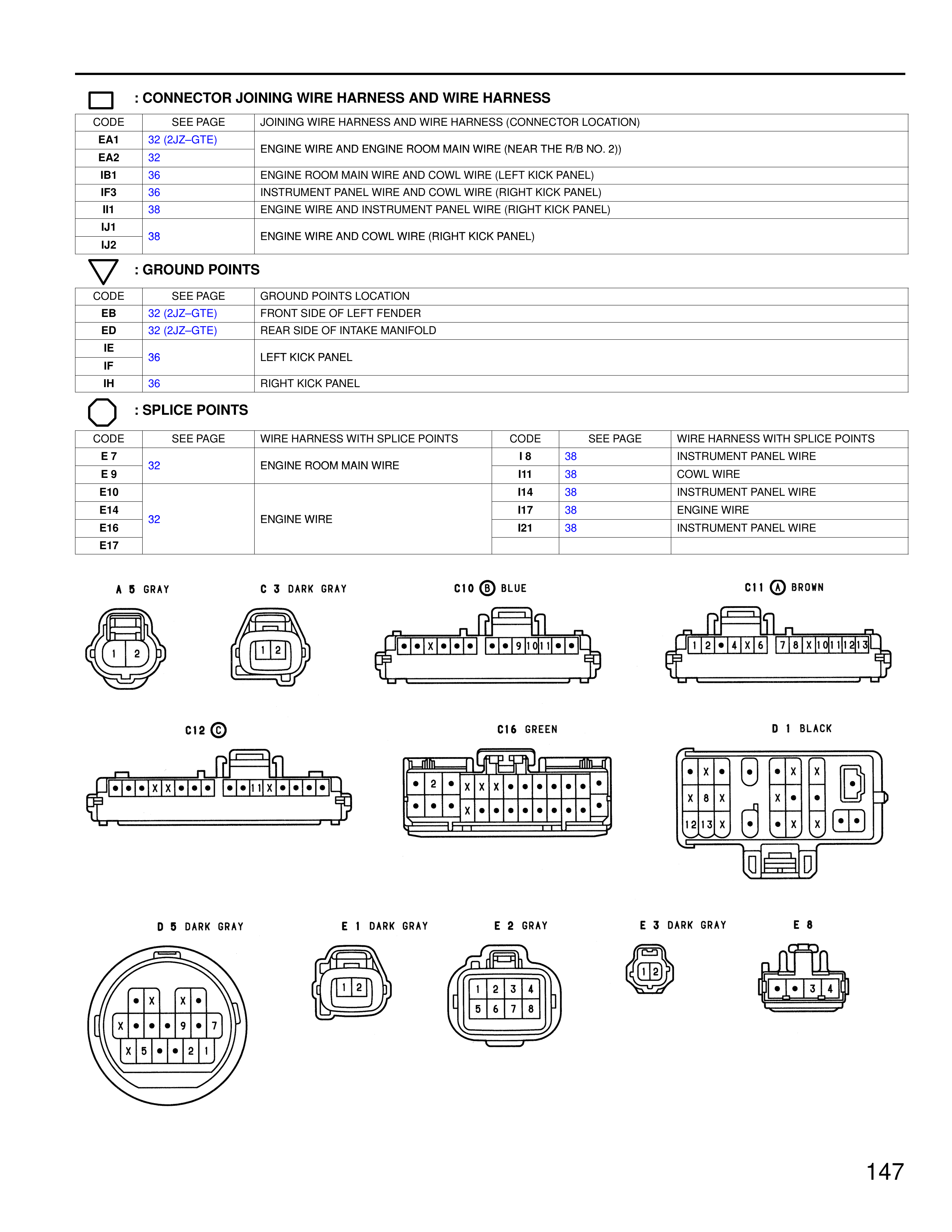 CODE | SEE PAGE | JOINING WIRE HARNESS AND WIRE HARNESS (CONNECTOR LOCATION)