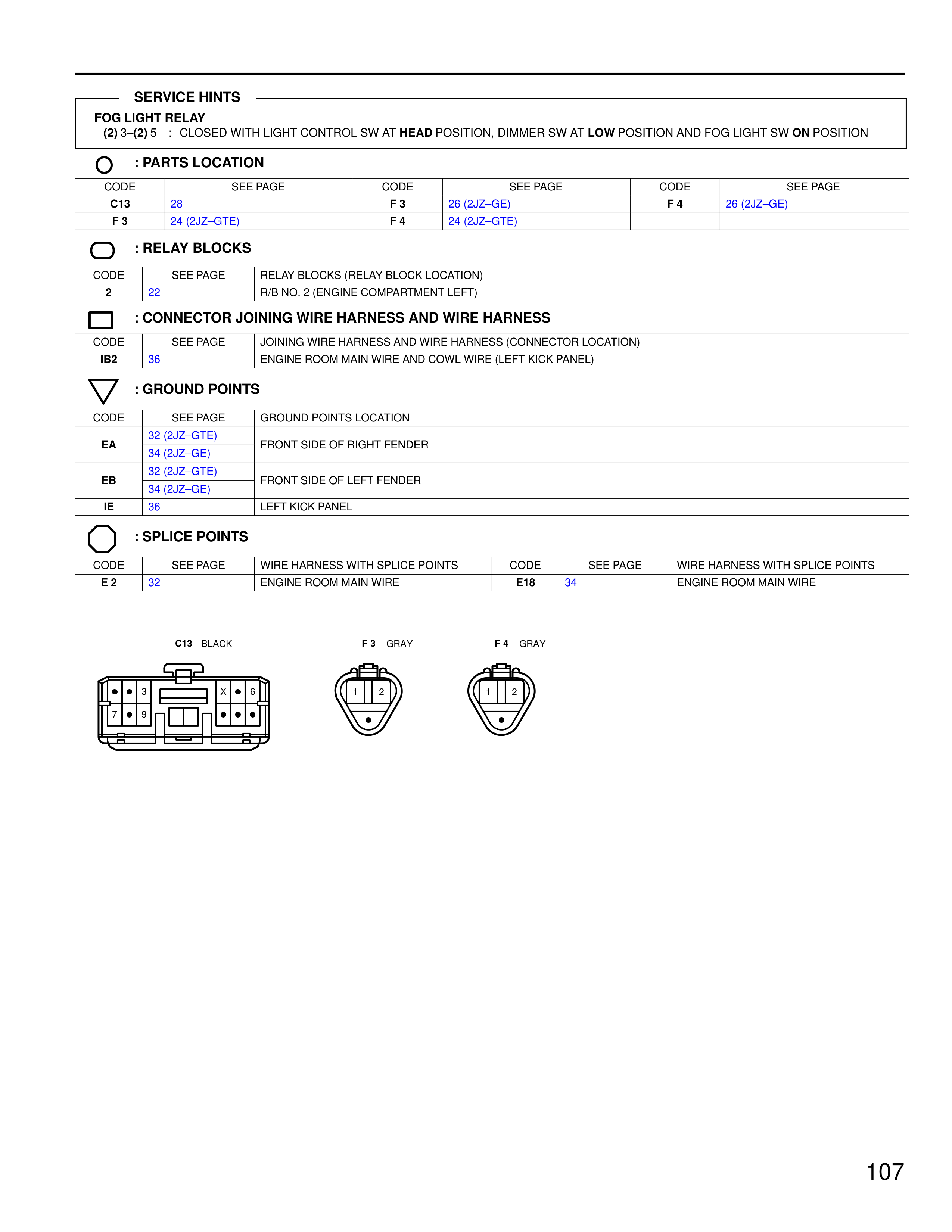CODE | SEE PAGE | JOINING WIRE HARNESS AND WIRE HARNESS (CONNECTOR LOCATION)