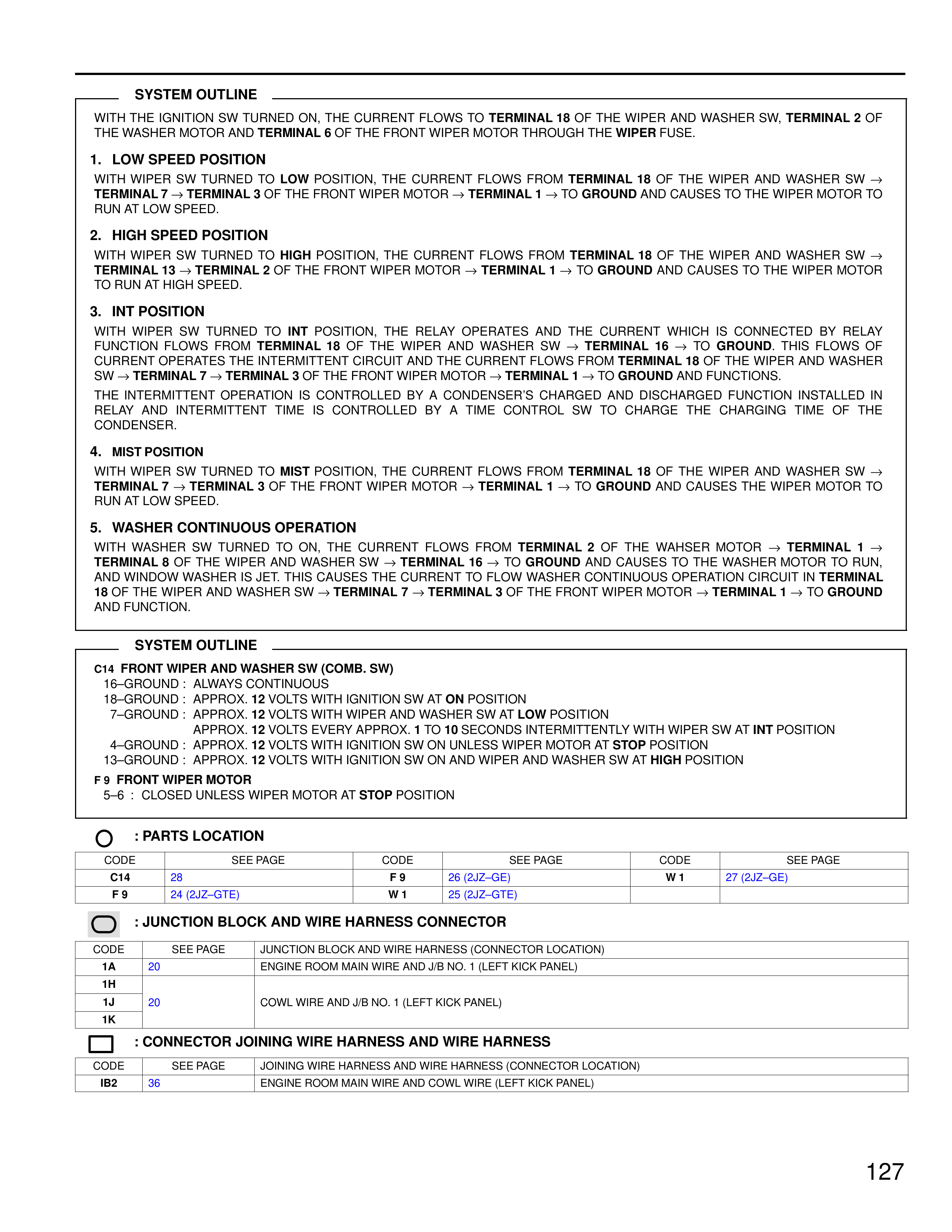 CODE | SEE PAGE | JUNCTION BLOCK AND WIRE HARNESS (CONNECTOR LOCATION)