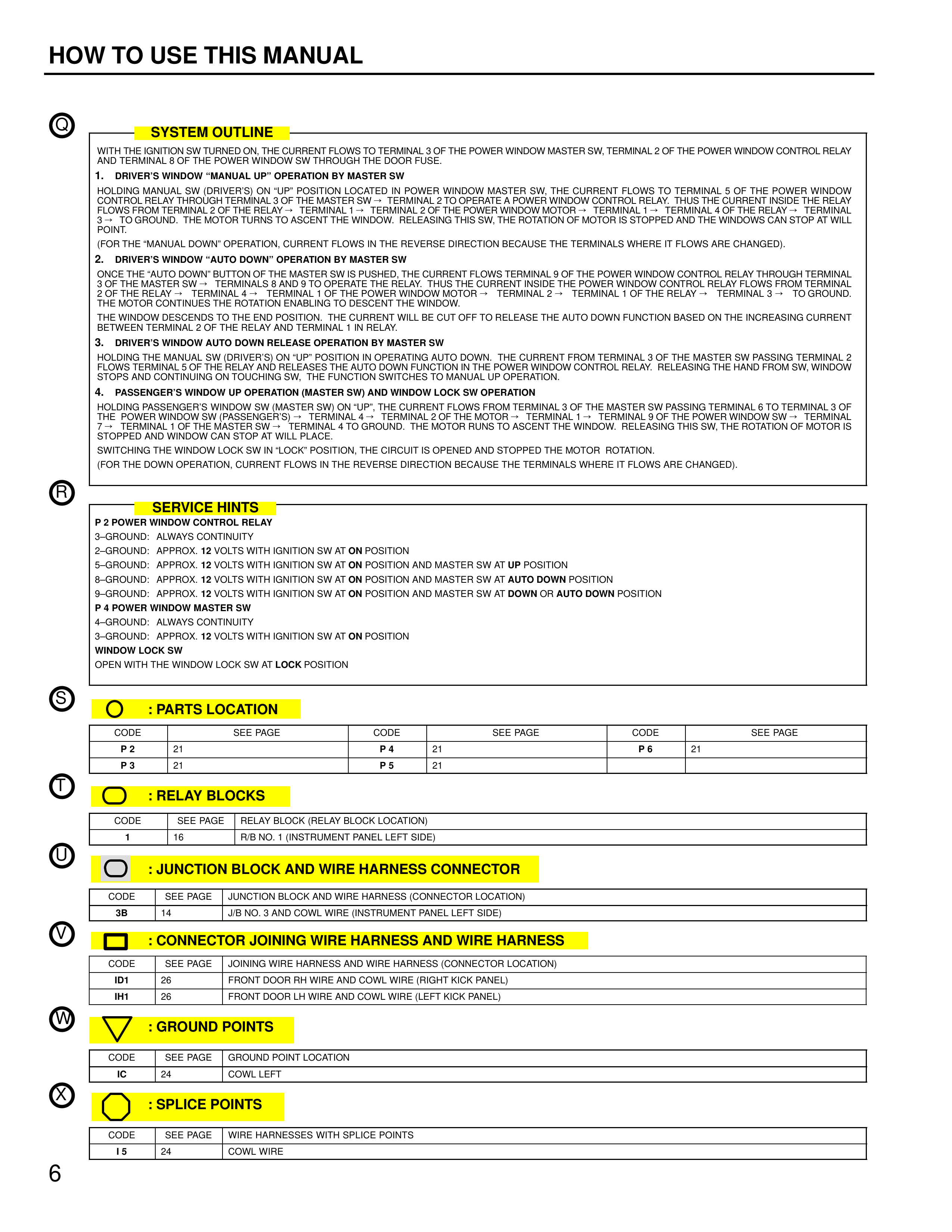 1. DRIVER'S WINDOW "MANUAL UP" OPERATION BY MASTER SW