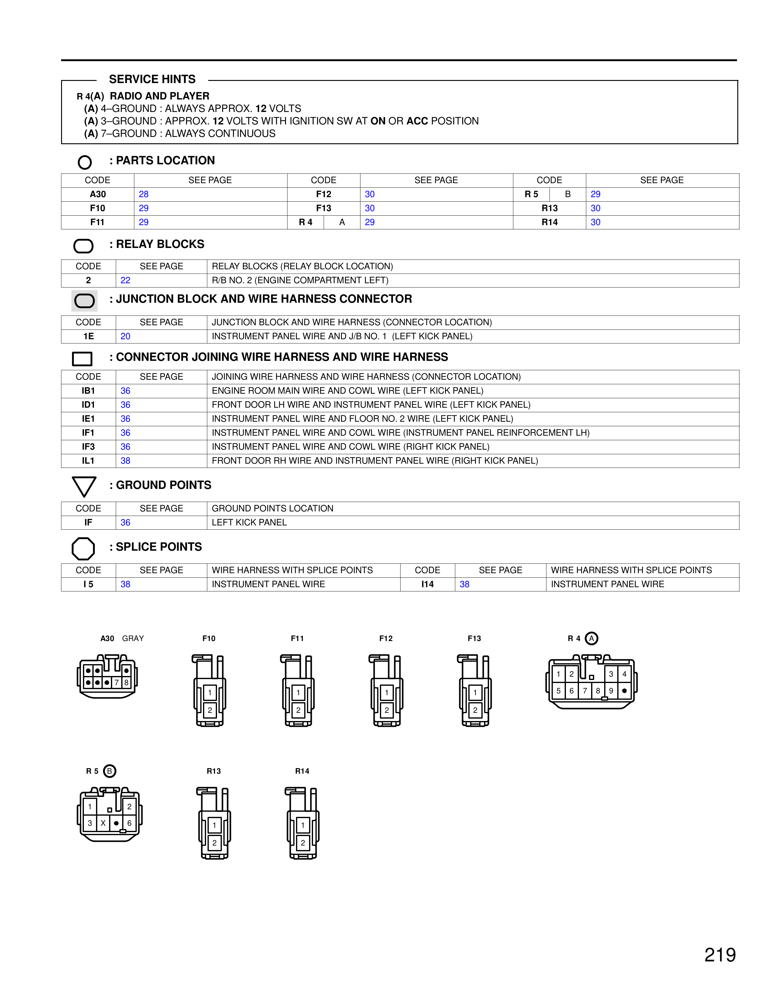 CODE SEE PAGE JOINING WIRE HARNESS AND WIRE HARNESS (CONNECTOR LOCATION)