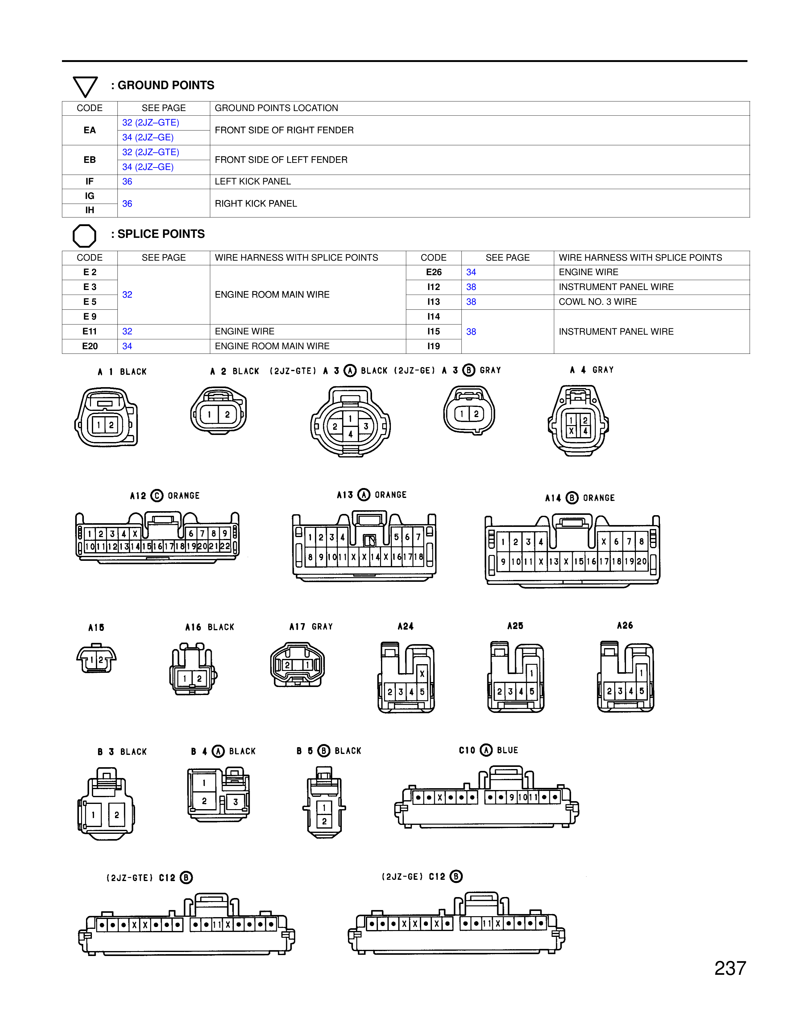 A 1 BLACK | A 2 BLACK (2JZ-GTE) A 3 ⓧ BLACK (2JZ-GE) A 3 ⓧ GRAY | A 4 GRAY