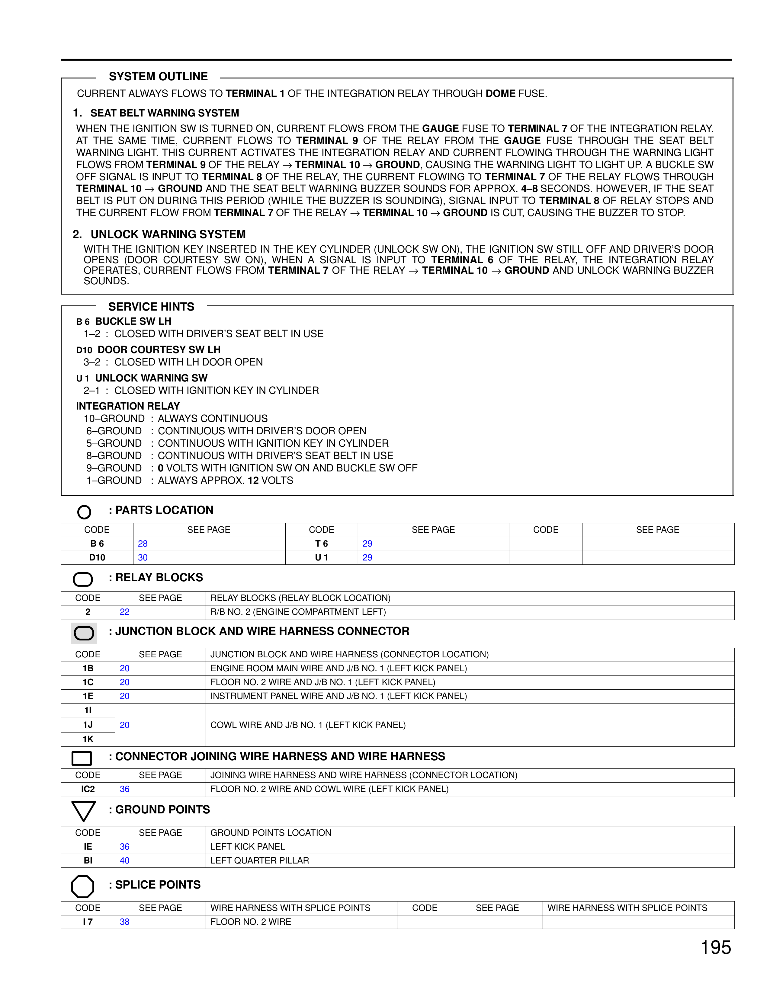 CODE SEE PAGE RELAY BLOCKS (RELAY BLOCK LOCATION)